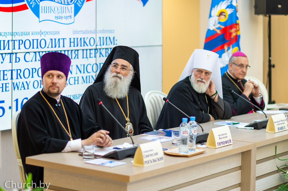 Открытие международной конференции «Митрополит Никодим: путь служения Церкви» состоялось в Минской городской ратуше. В президиум форума вошли: митрополит Павел, митрополит Тимофей, римско-католический митрополит Минско-Могилевский архиепископ Тадеуш Кондрусевич, профессор Санкт-Петербургской духовной академии архимандрит Августин (Никитин). Модератором конференции выступил иерей Святослав Рогальский, председатель правления МОО «Христианский образовательный центр имени святых Мефодия и Кирилла».