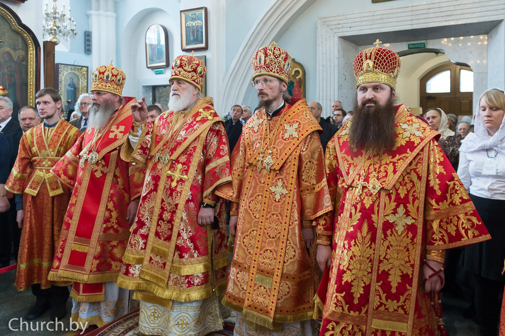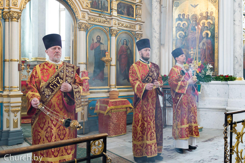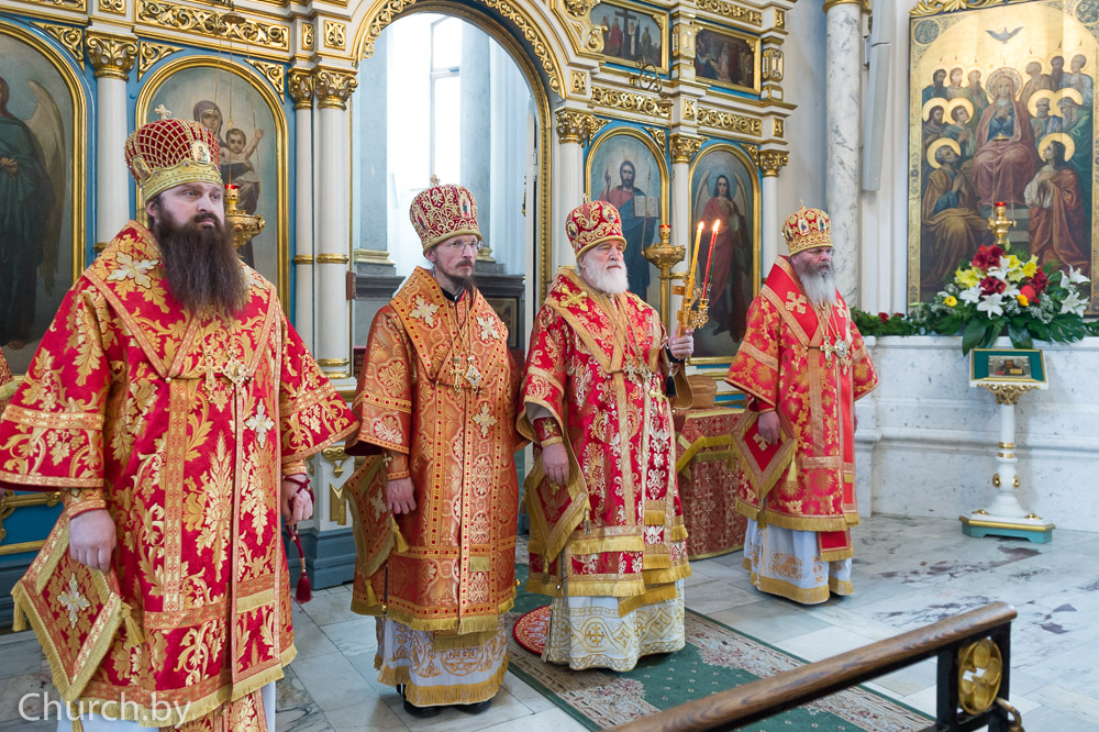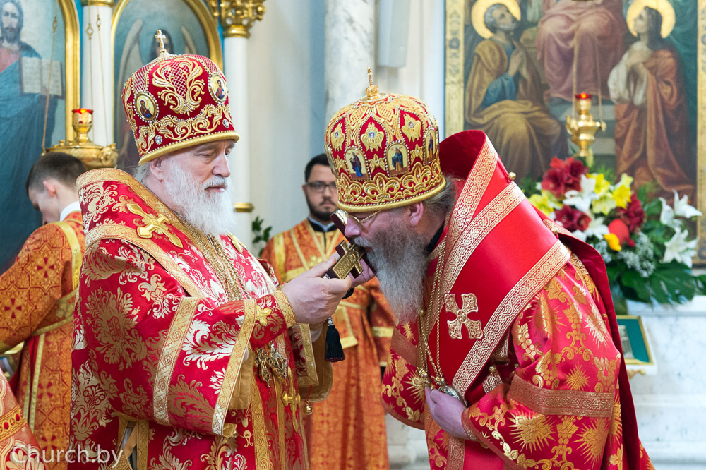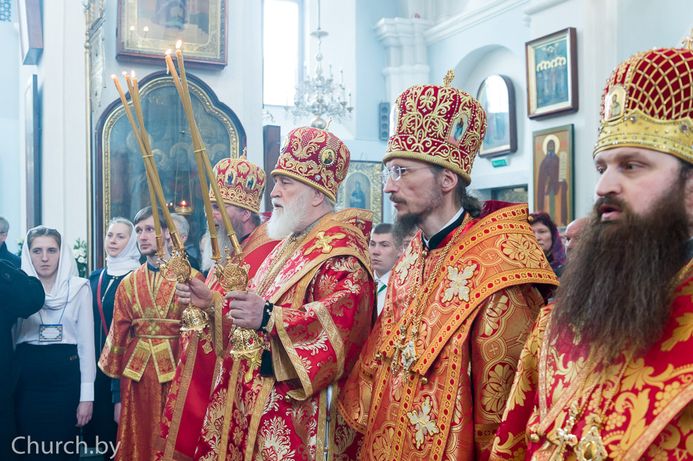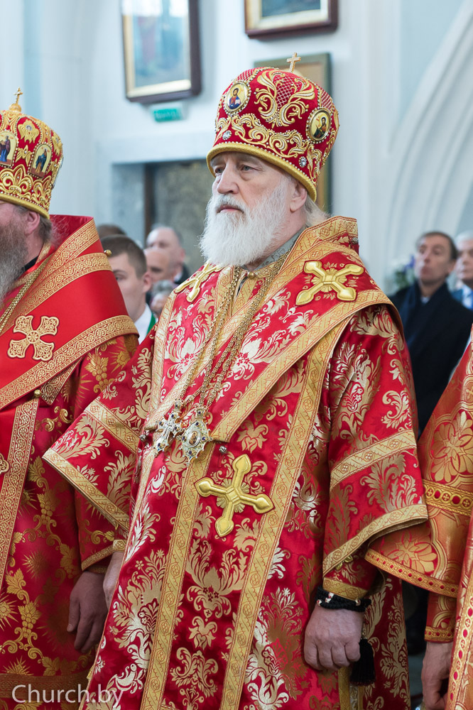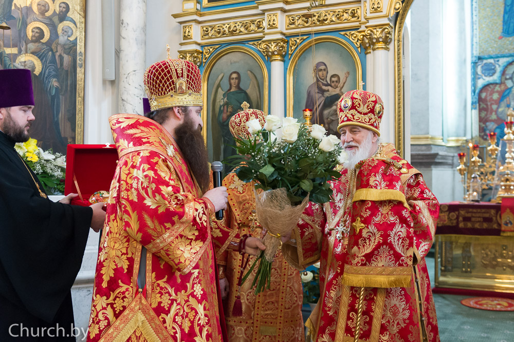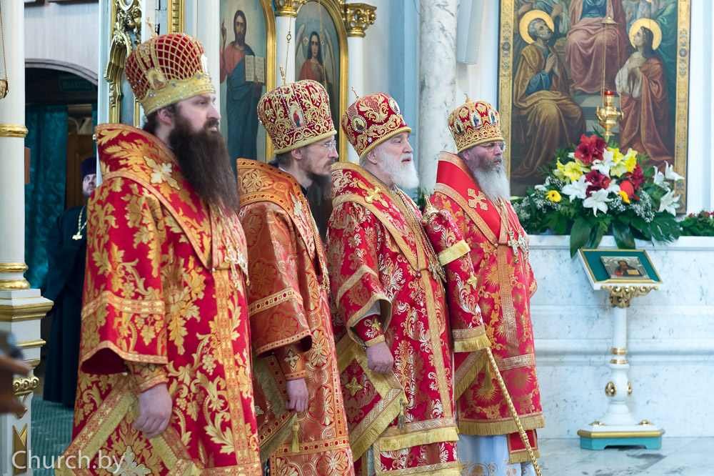 Архипастырям сослужили клирики кафедрального собора, благочинные и настоятели храмов города Минска.