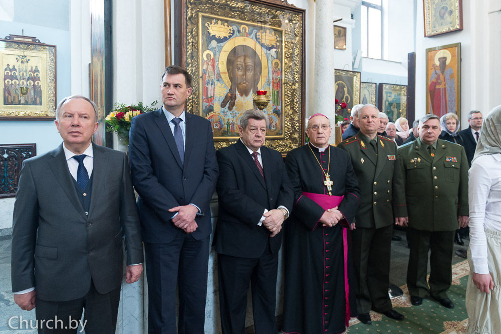 На богослужении присутствовали: заместитель Премьер-министра Республики Беларусь Василий Иванович Жарко, первый заместитель Главы Администрации Президента Республики Беларусь Максим Владимирович Рыженков, Уполномоченный по делам религий и национальностей Леонид Павлович Гуляко и другие официальные представители государственной власти, архиепископ Тадеуш Кондрусевич, представители дипломатического корпуса, руководители общественных организаций, деятели науки и культуры.