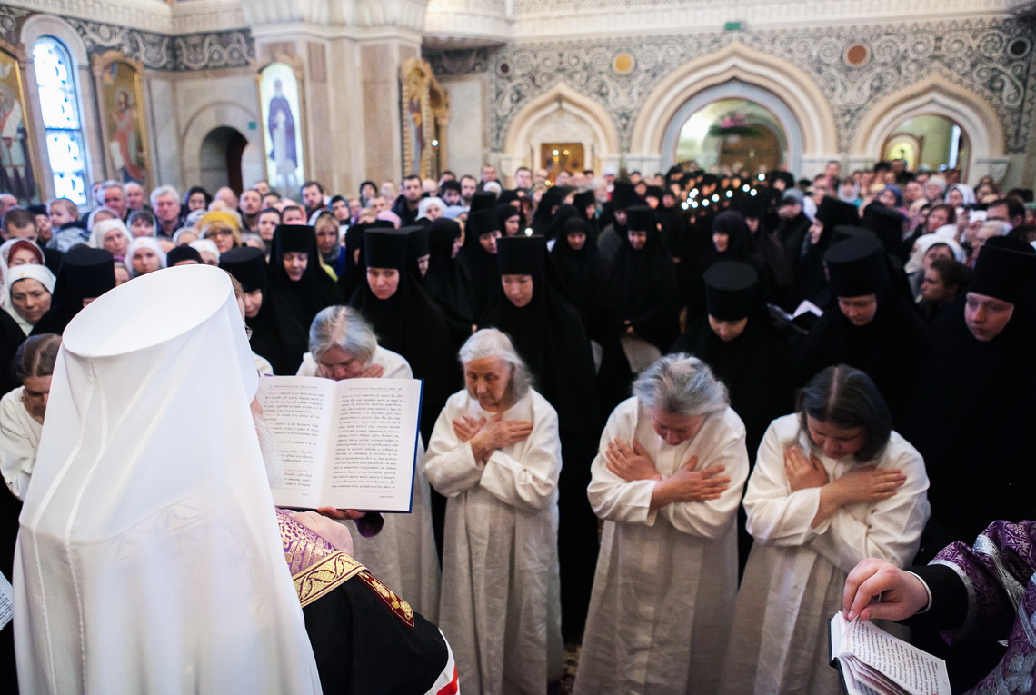 По окончании богослужения Патриарший Экзарх совершил пострижение в рясофор пяти послушниц и в мантию — шести рясофорных инокинь Елисаветинской обители.