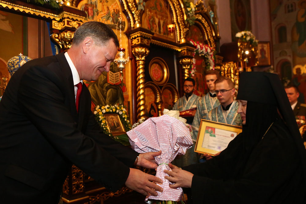 На богослужении присутствовали: Уполномоченный по делам религий и национальностей Леонид Павлович Гуляко; помощник Президента Республики Беларусь, главный инспектор по Гродненской области Сергей Васильевич Ровнейко; управляющий делами Гродненского областного исполнительного комитета Игорь Андреевич Попов; представители администрации города и светской власти.