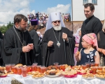 Патриарший Экзарх поздравил всех причастников с принятием Святых Христовых Таин и преподал всем архипастырское благословение. На молитвенную память всем молящимся были розданы иконки Сукневичской иконы Божией Матери.