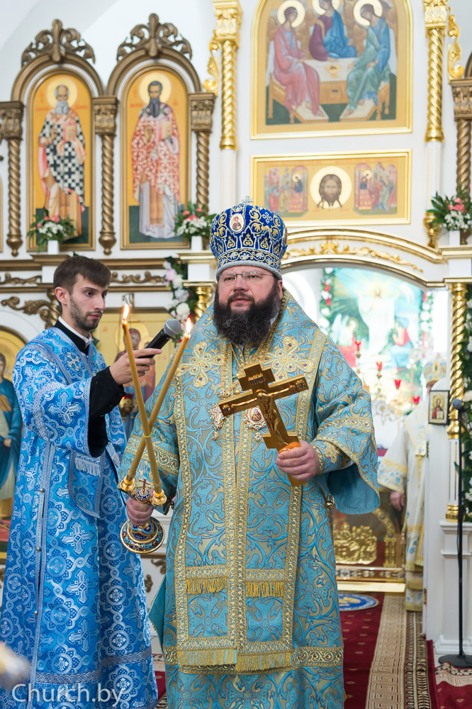 Его Высокопреосвященству сослужили: митрополит Смоленский и Дорогобужский Исидор; архиепископы Пинский и Лунинецкий Стефан, Могилевский и Мстиславский Софроний, Гомельский и Жлобинский Стефан; епископы Бобруйский и Быховский Серафим, Туровский и Мозырский Леонид, Борисовский и Марьиногорский Вениамин, Лидский и Сморгонский Порфирий.