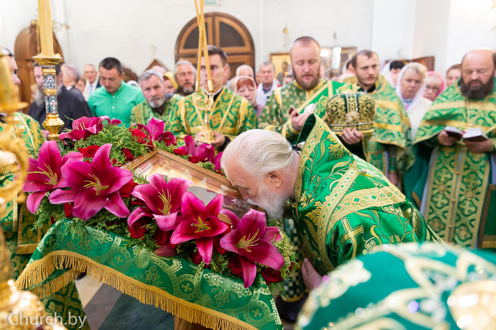 Митрополит Павел поздравил причастников с принятием Святых Христовых Таин, преподал всем архипастырское благословение и на молитвенную память вручил молящимся иконки святого пророка Илии и преподобномученика Афанасия Брестского. Именинникам было провозглашено многолетие, после чего владыка Павел вручил им просфоры и цветы.