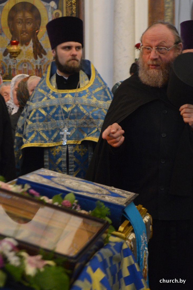 Его Высокопреосвященству сослужили: управляющий делами Минской Экзархии архимандрит Сергий (Брич) и клирики кафедрального собора.