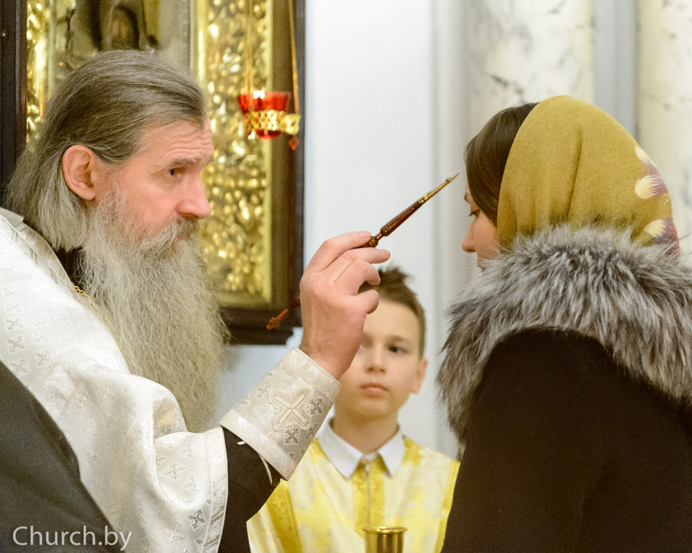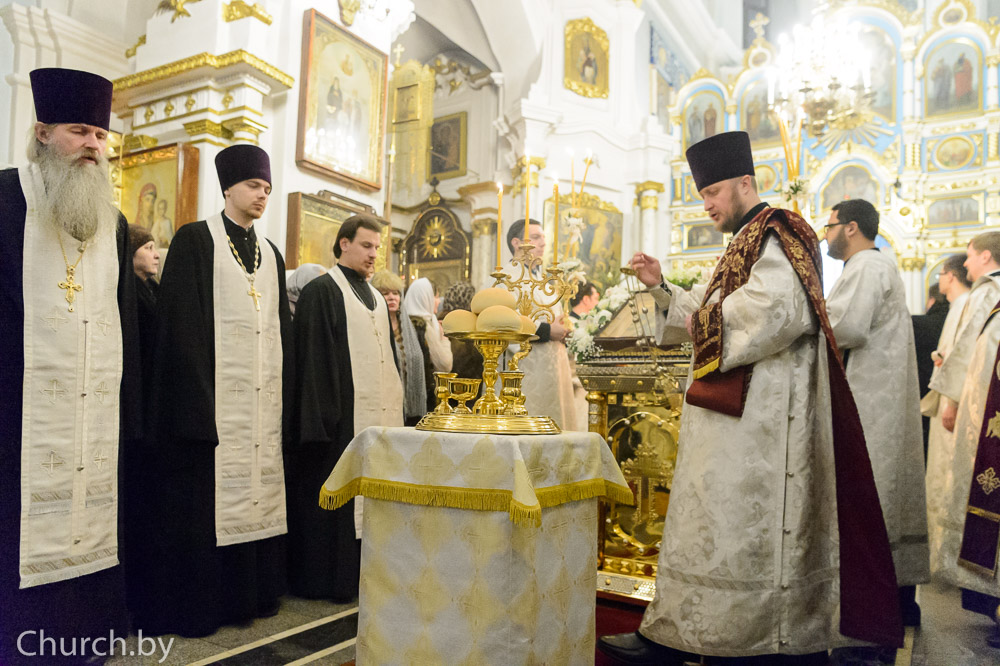 Его Высокопреосвященству сослужили: управляющий делами Минской Экзархии архимандрит Сергий (Брич); секретарь Минской епархии протоиерей Андрей Волков и клирики кафедрального собора.