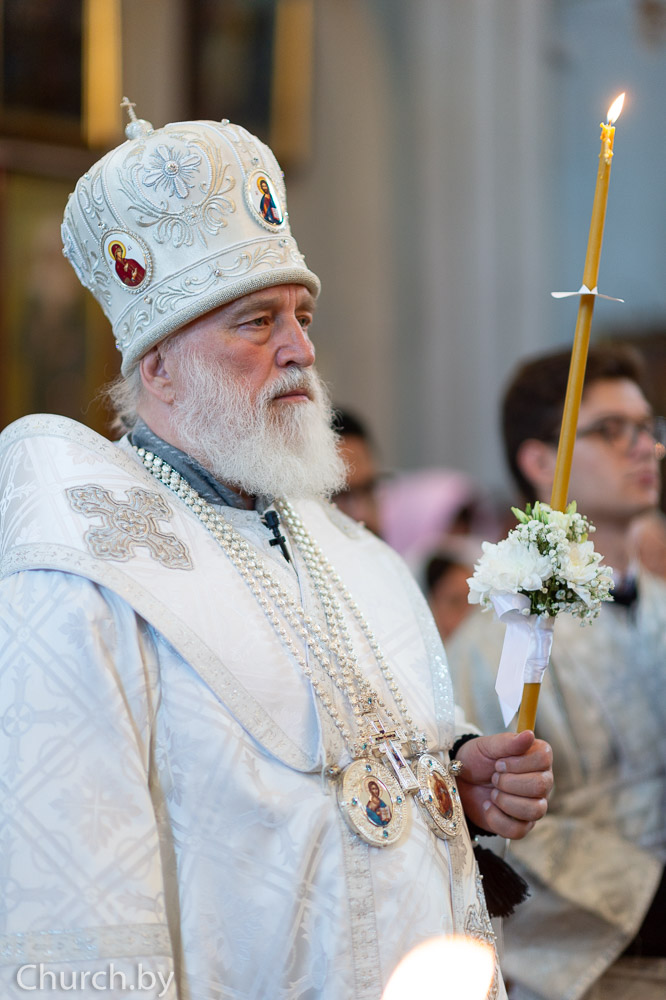Его Высокопреосвященству сослужили: первый проректор Института теологии БГУ протоиерей Сергий Гордун, секретарь Минской епархии протоиерей Андрей Волков и клирики кафедрального собора.