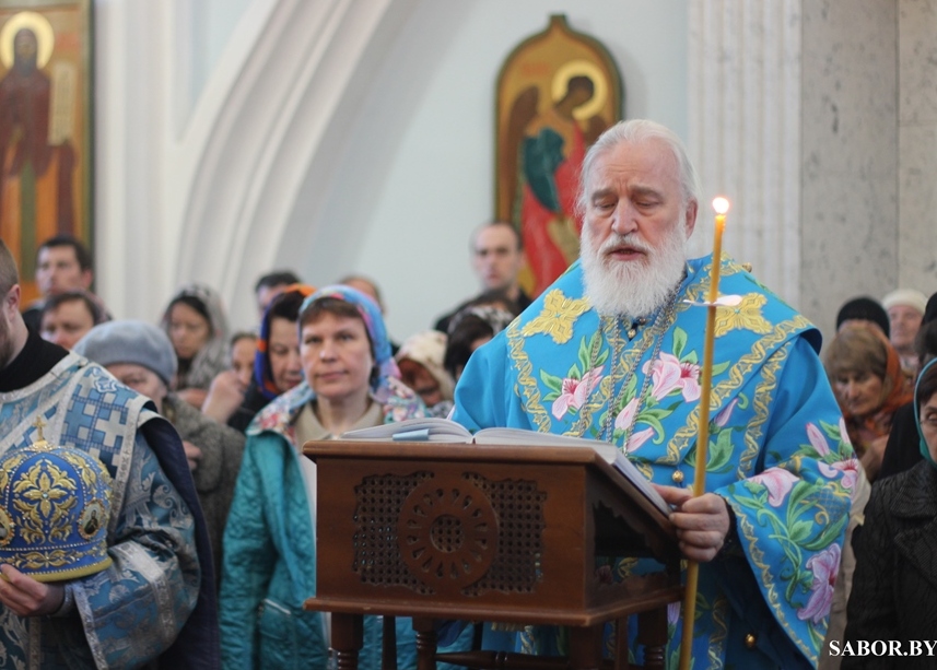 В канун Субботы Акафиста Патриарший Экзарх совершил утреню с чтением Акафиста Пресвятой Богородице в Свято-Духовом кафедральном соборе города Минска