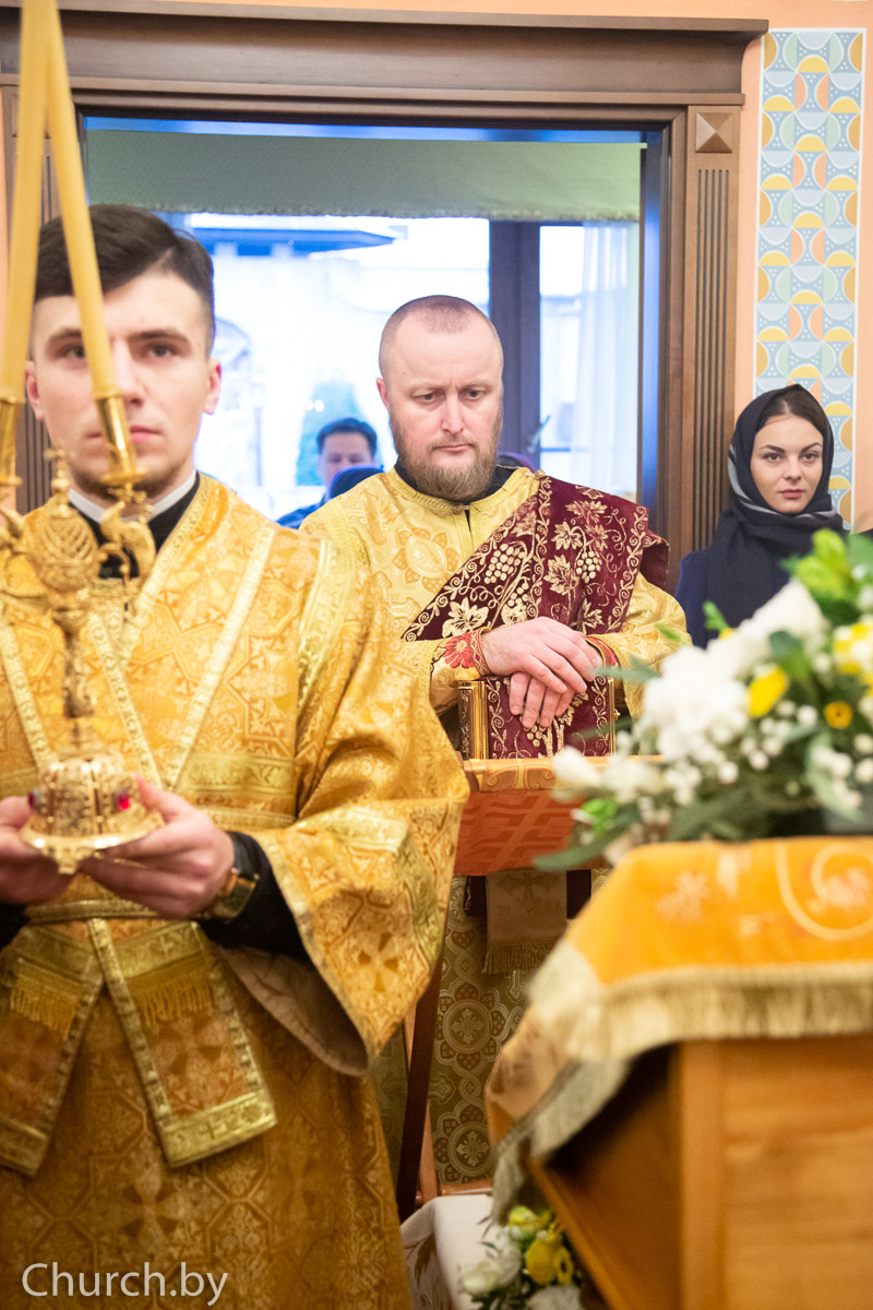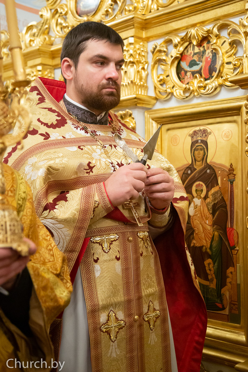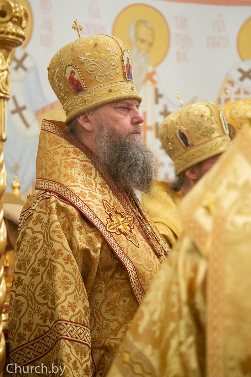 Богослужение возглавил митрополит Минский и Заславский Павел, Патриарший Экзарх всея Беларуси. Владыке Экзарху сослужили: митрополит Смоленский и Дорогобужский Исидор; архиепископ Новогрудский и Слонимский Гурий; архиепископ Брестский и Кобринский Иоанн; епископы: Борисовский и Марьиногорский Вениамин; Слуцкий и Солигорский Антоний; Полоцкий и Глубокский Игнатий.
