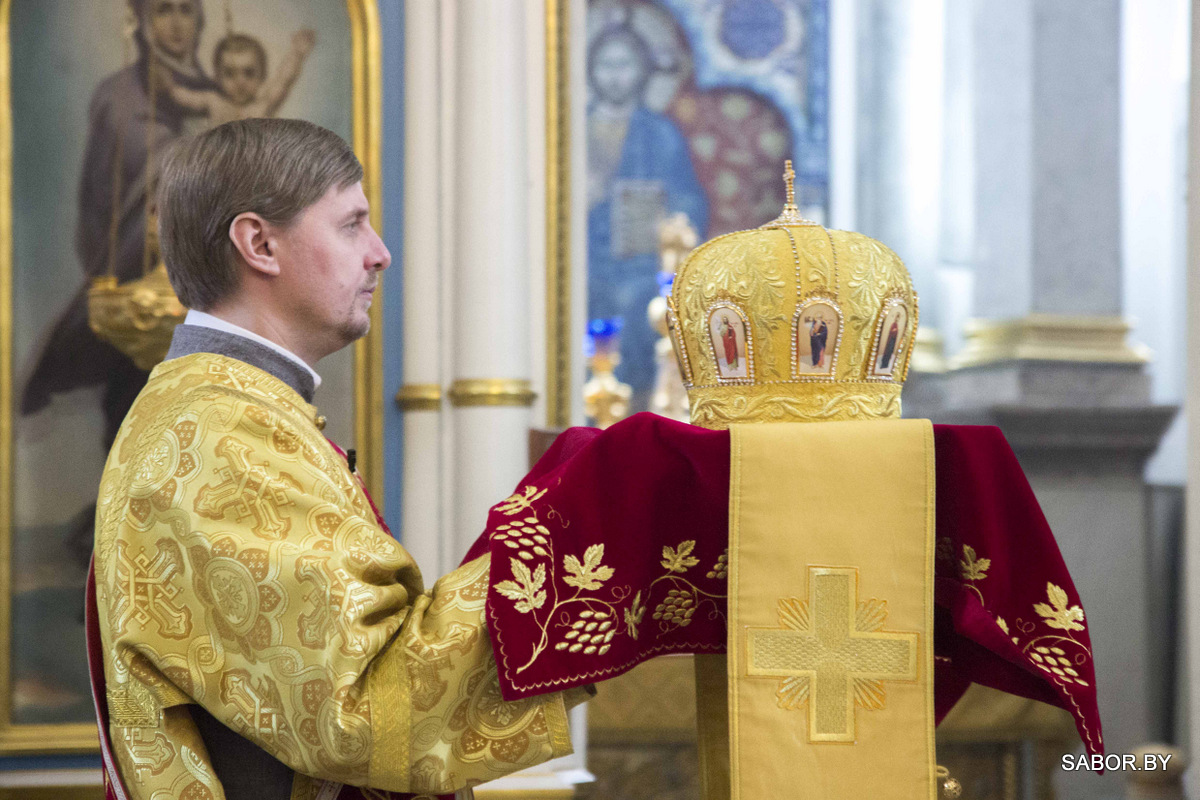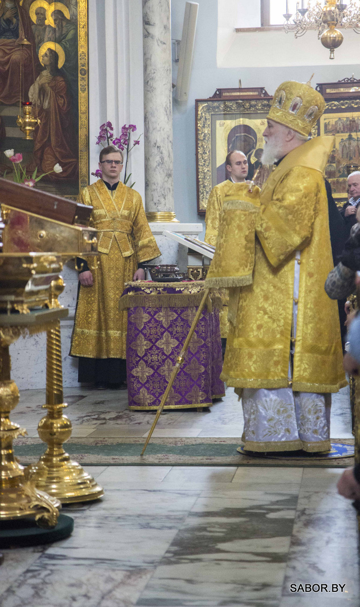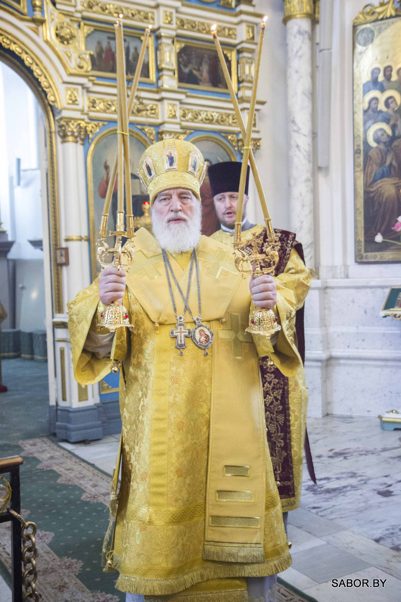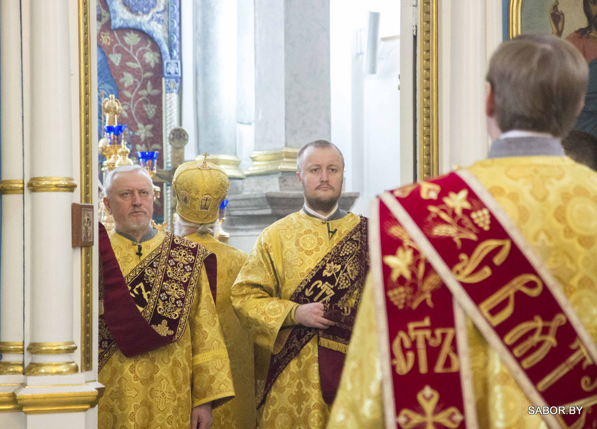 Его Высокопреосвященству сослужили: управляющий делами Минской Экзархии архимандрит Сергий (Брич); секретарь Минской епархии протоиерей Андрей Волков и клирики Свято-Духова кафедрального собора.