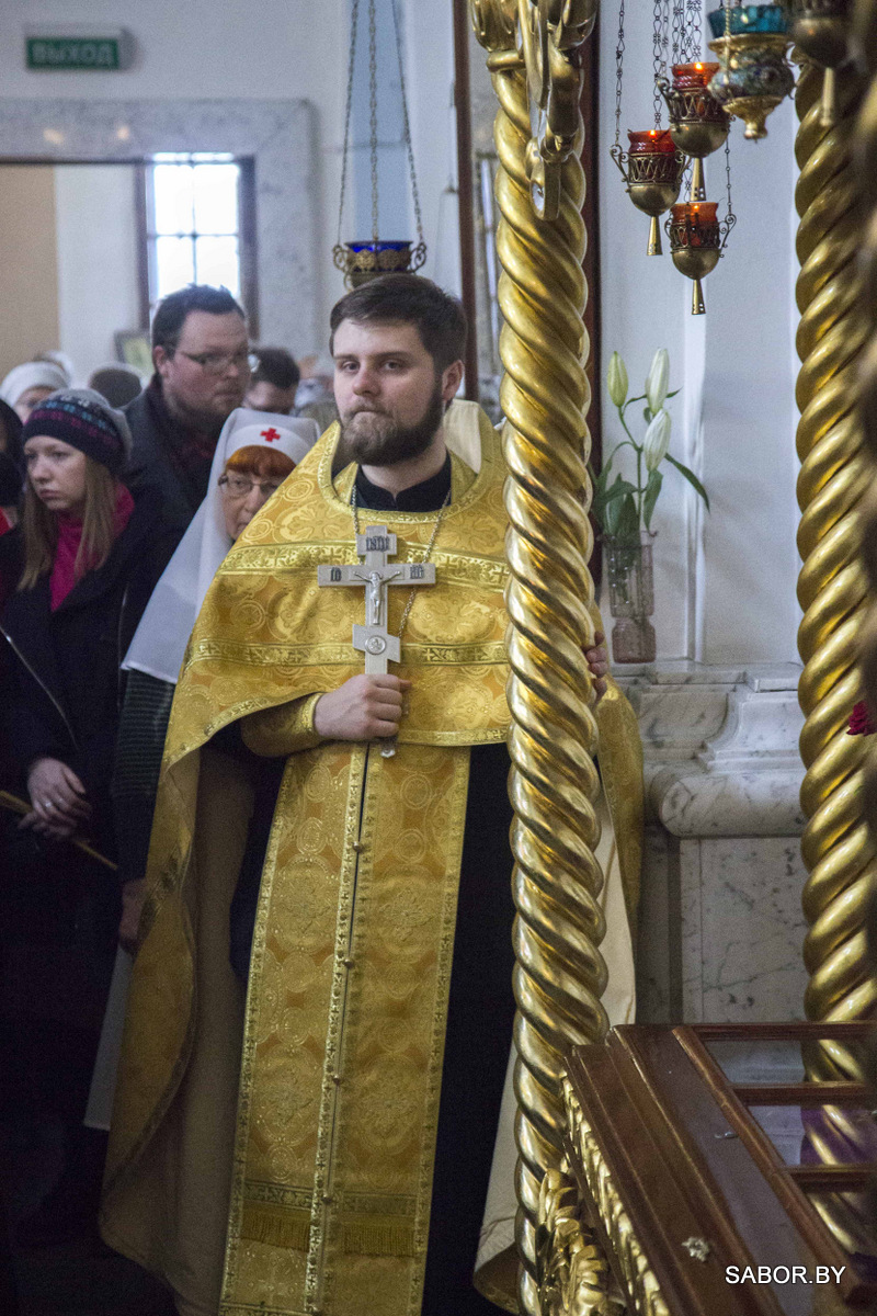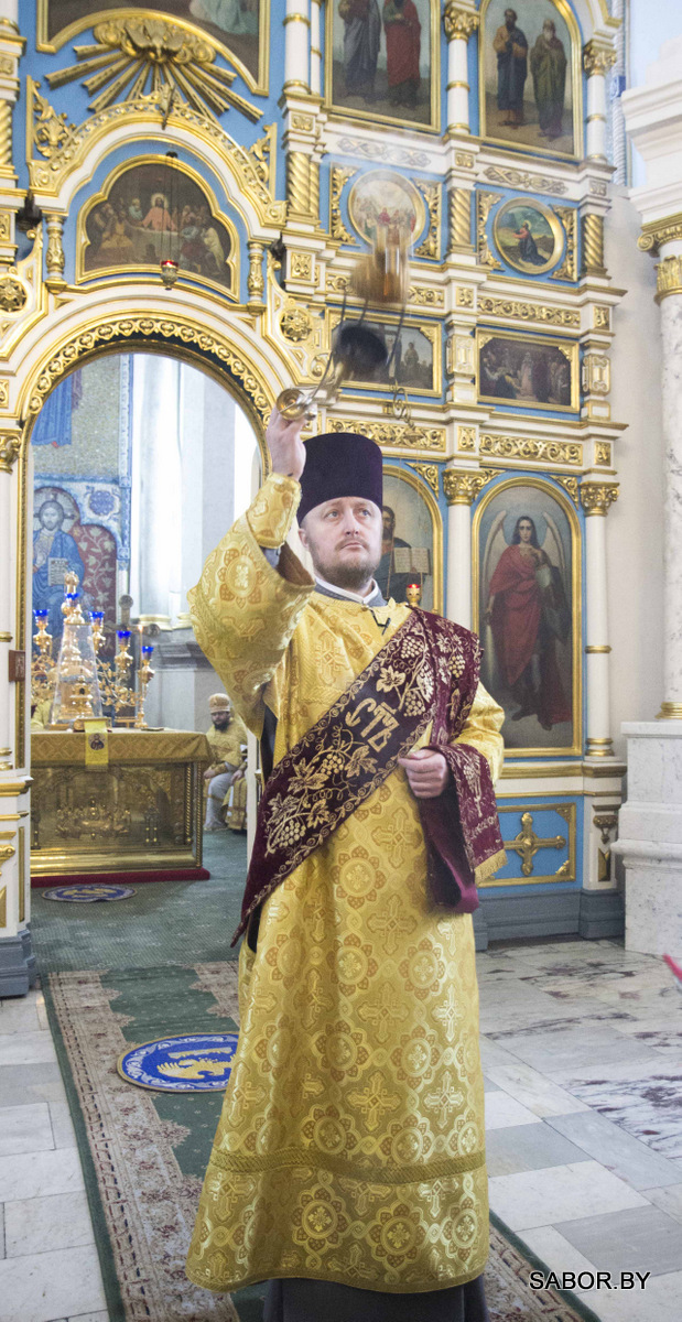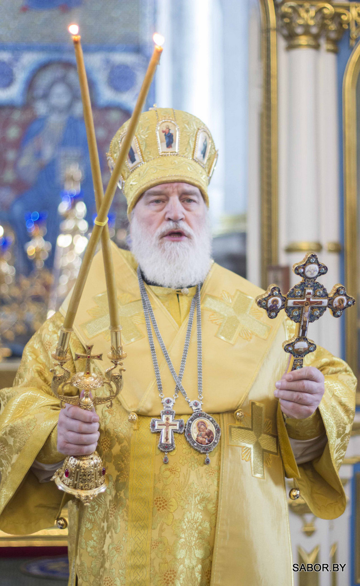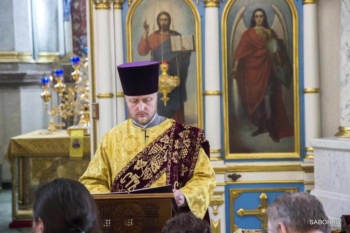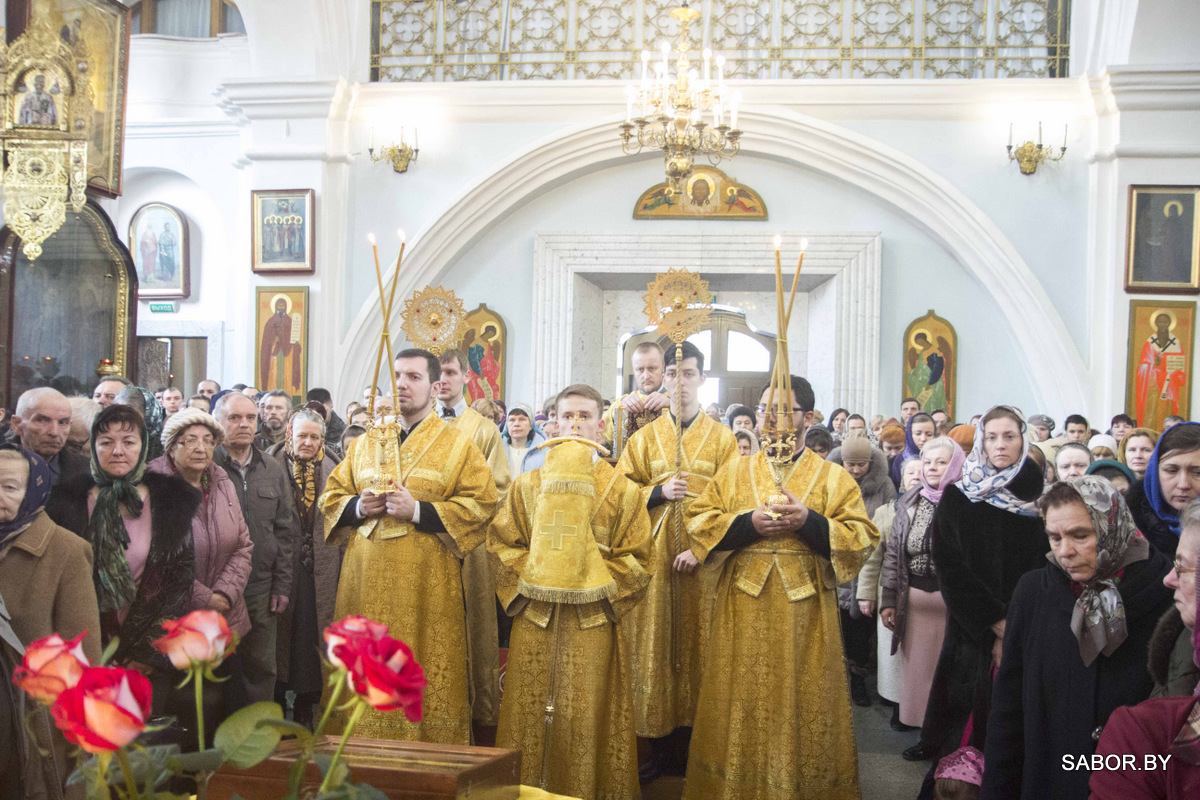 Его Высокопреосвященству сослужили: управляющий делами Минской Экзархии архимандрит Сергий (Брич); секретарь Минской епархии протоиерей Андрей Волков и клирики Свято-Духова кафедрального собора.