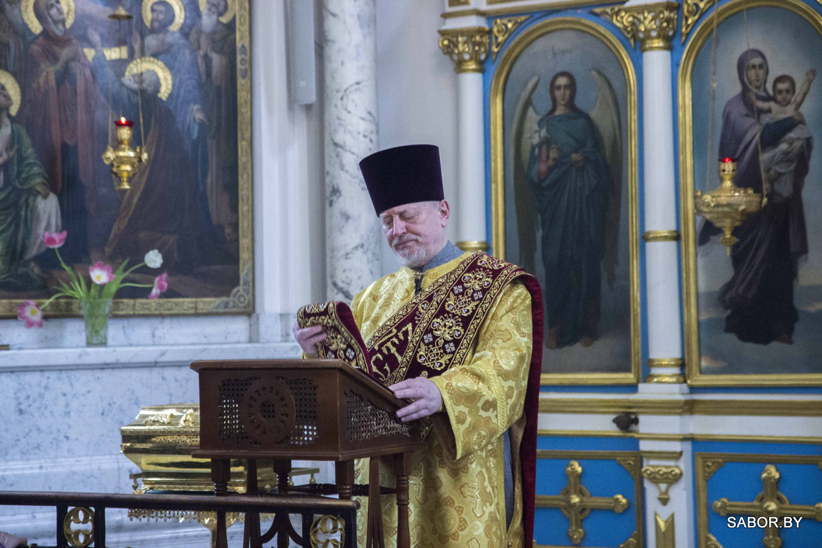Проповедь по запричастном стихе произнес клирик Свято-Духова кафедрального собора протодиакон Николай Авсиевич.