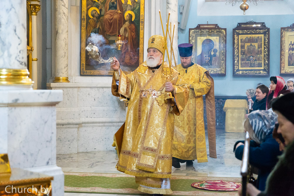 Его Высокопреосвященству сослужили секретарь Минской епархии протоиерей Андрей Волков и клирики Свято-Духова кафедрального собора.