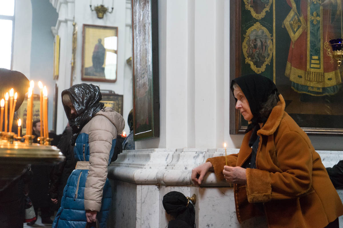 В алтаре молилось духовенство собора.