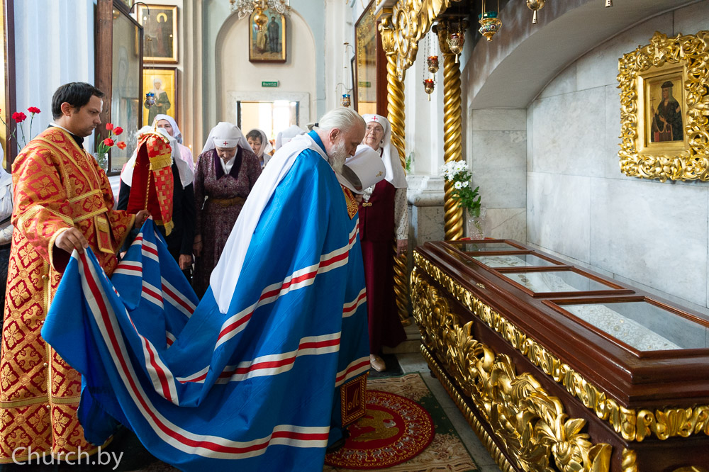 За богослужением молились настоятельница Спасо-Евфросиниевского ставропигиального женского монастыря игумения Евдокия (Левшук) и настоятельница Свято-Елисаветинского женского монастыря игумения Евфросиния (Лаптик).