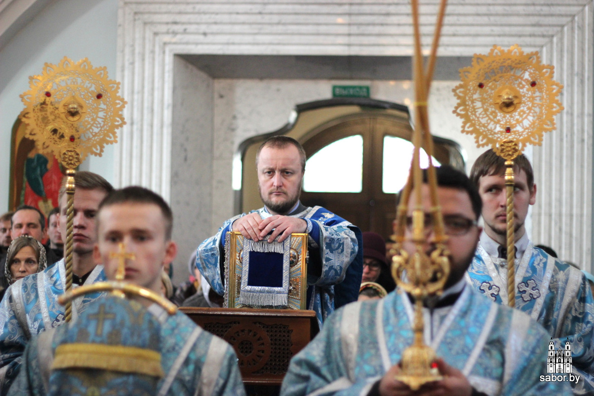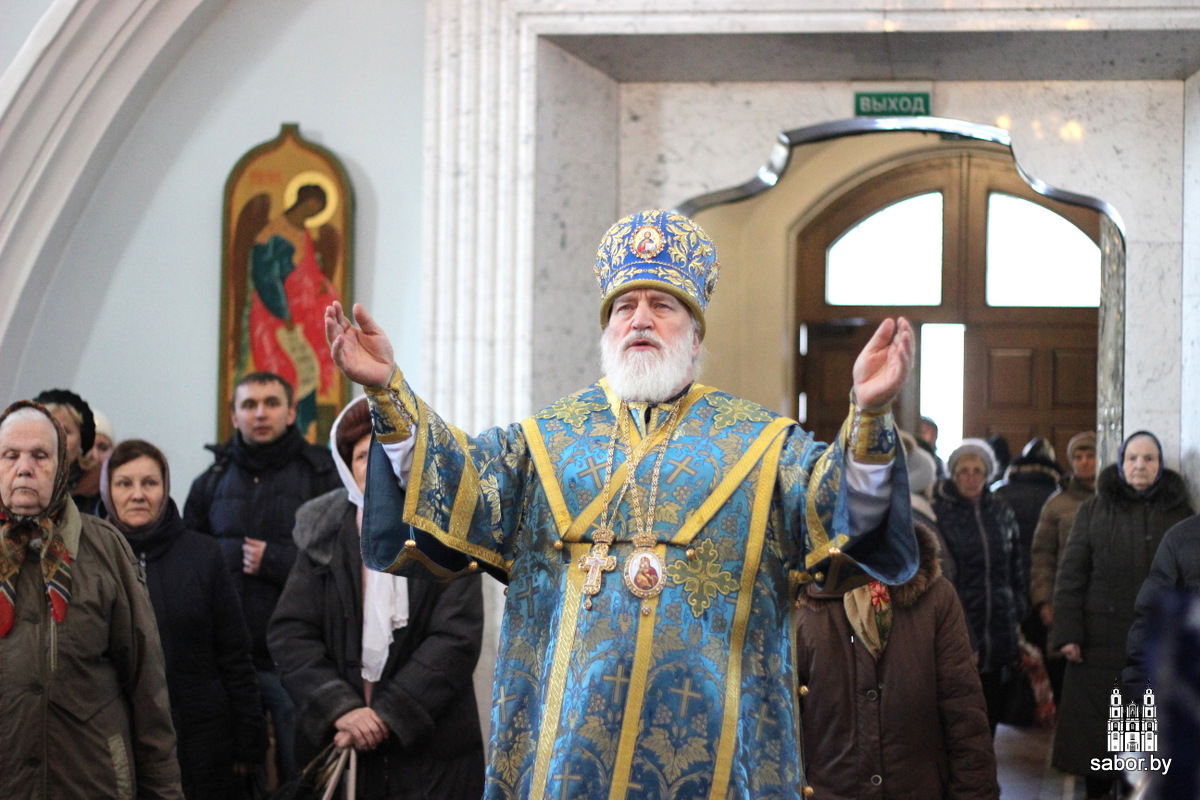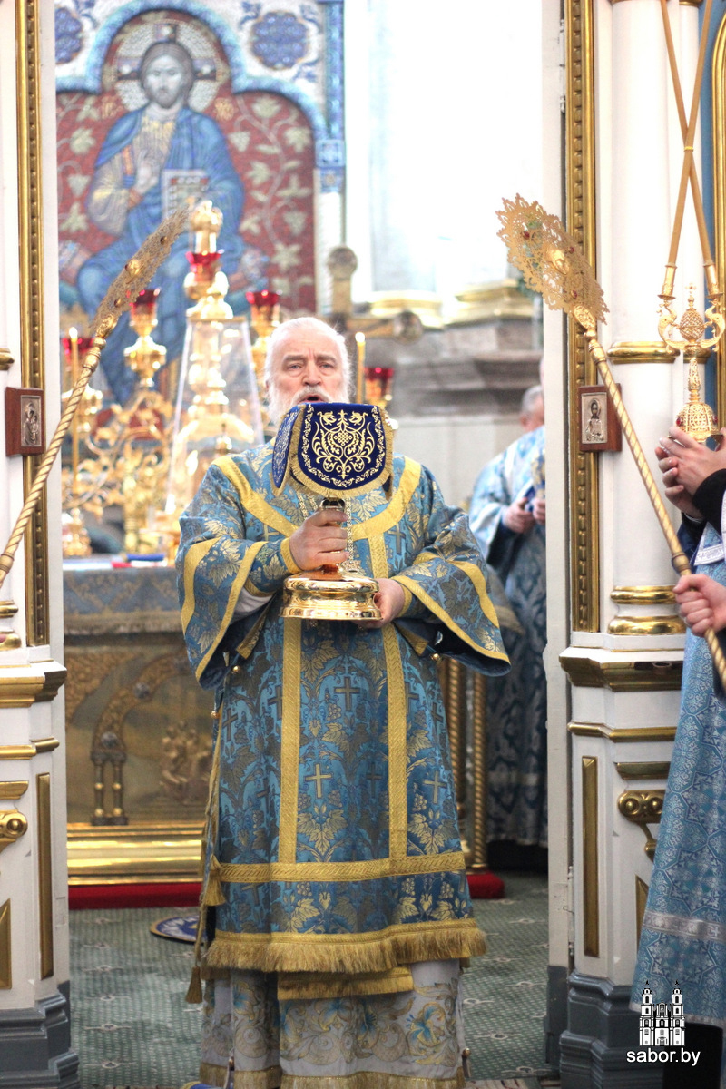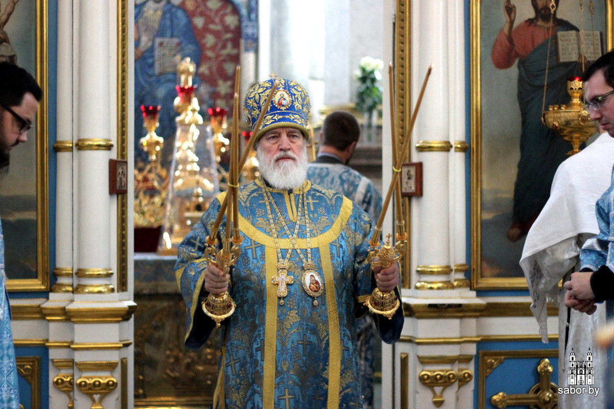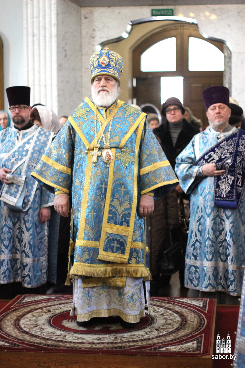 Его Высокопреосвященству сослужили: управляющий делами Минской Экзархии архимандрит Сергий (Брич); секретарь Минской епархии протоиерей Андрей Волков и клирики кафедрального собора.