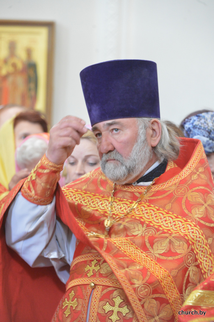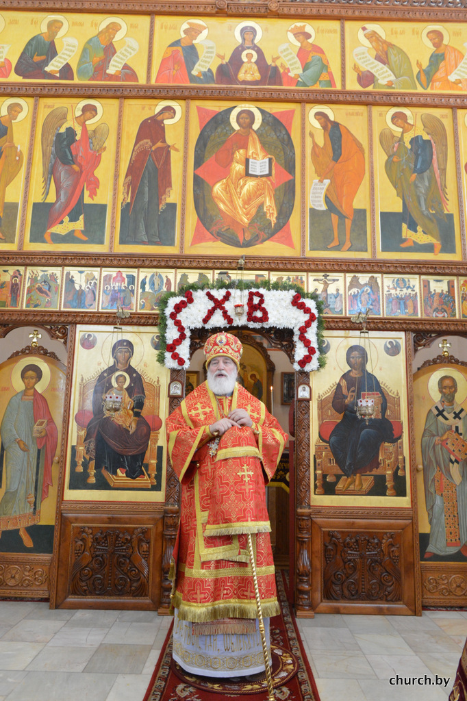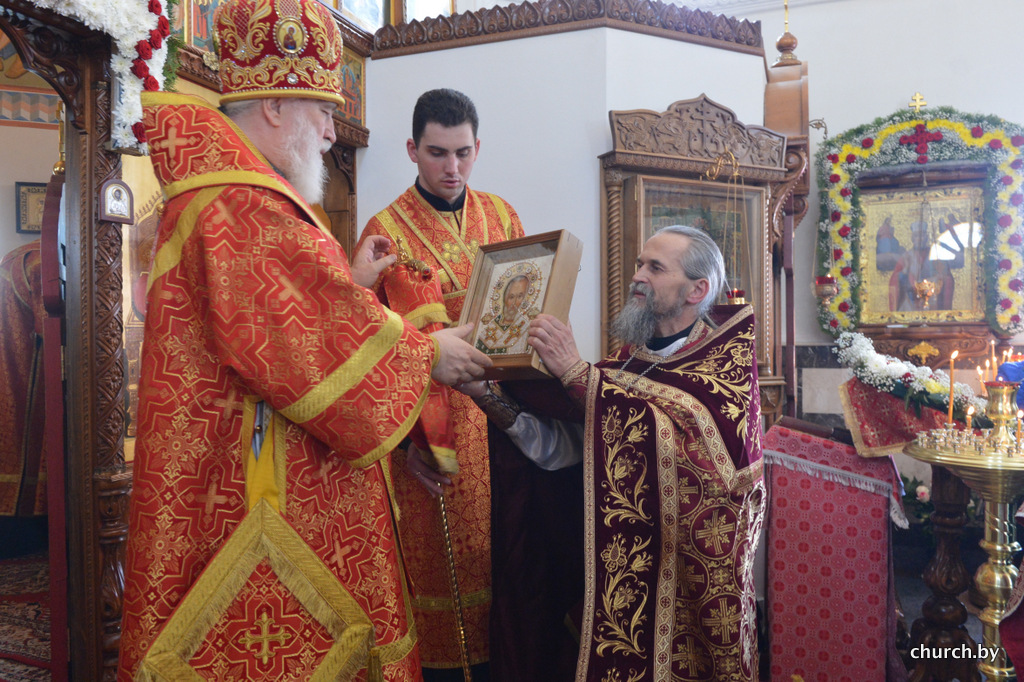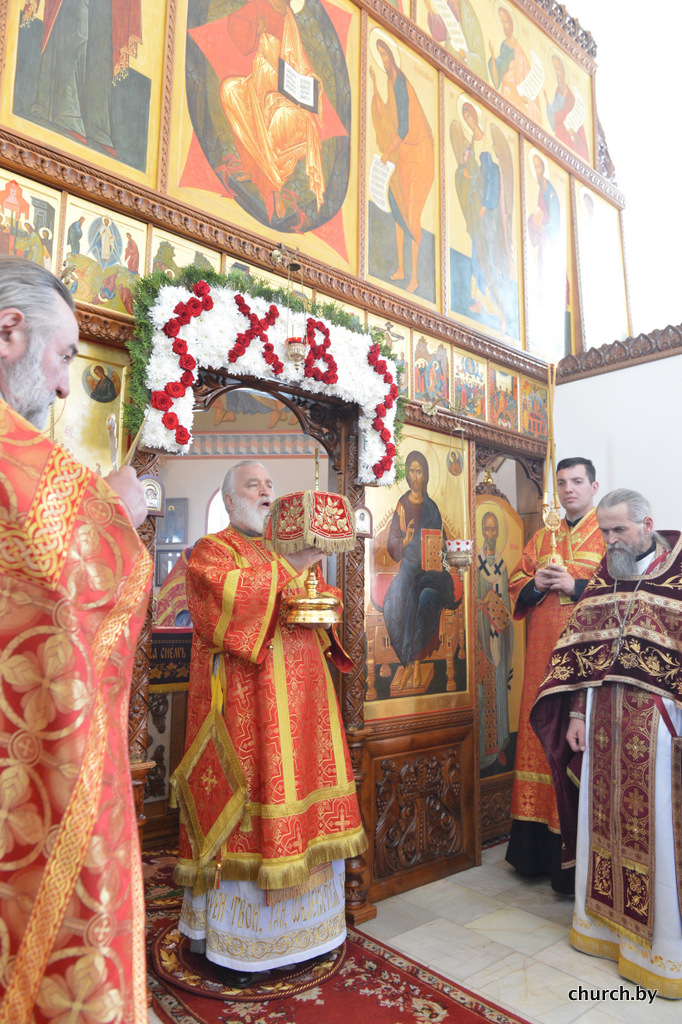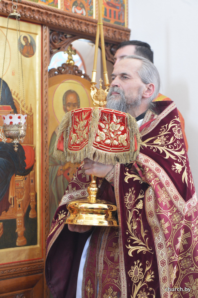 Его Высокопреосвященству сослужили: настоятель храма, благочинный 6-го Минского городского округа протоиерей Сергий Комлик; настоятель храма святой праведной Софии Слуцкой протоиерей Анатолий Мозолевский; секретарь Минской епархии протоиерей Андрей Волков; настоятель Богоявленского храма протоиерей Владимир Герасименко.