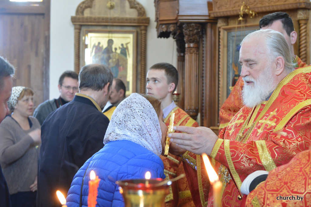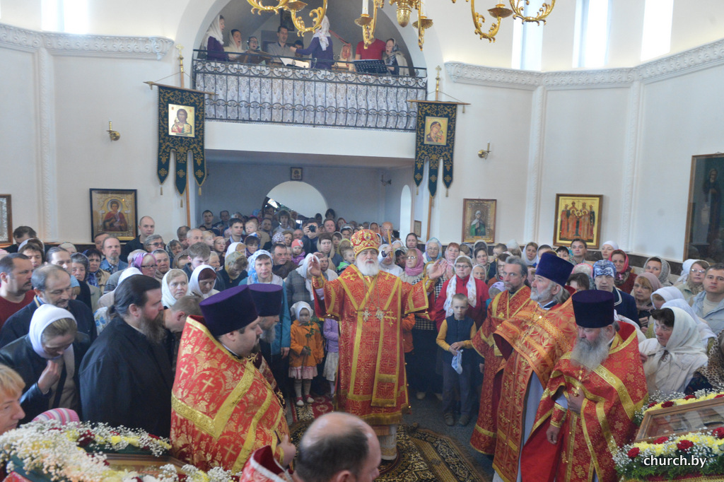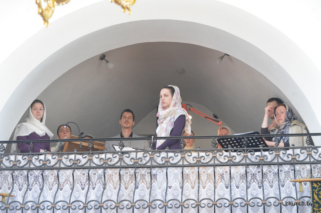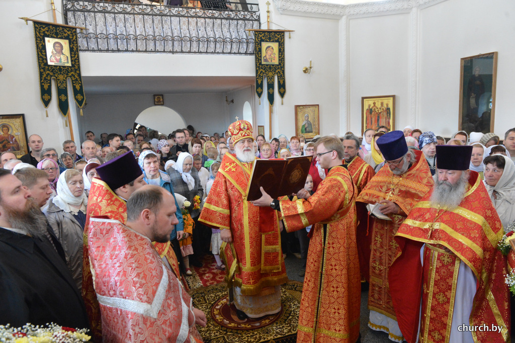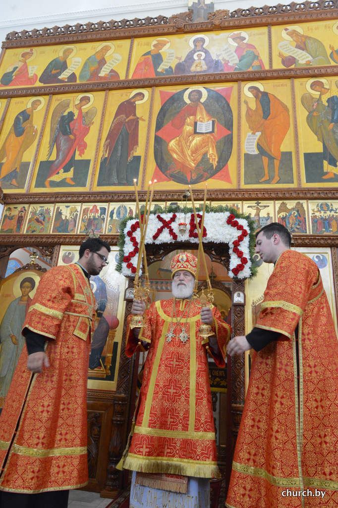 Его Высокопреосвященству сослужили: настоятель храма, благочинный 6-го Минского городского округа протоиерей Сергий Комлик; настоятель храма святой праведной Софии Слуцкой протоиерей Анатолий Мозолевский; секретарь Минской епархии протоиерей Андрей Волков; настоятель Богоявленского храма протоиерей Владимир Герасименко.