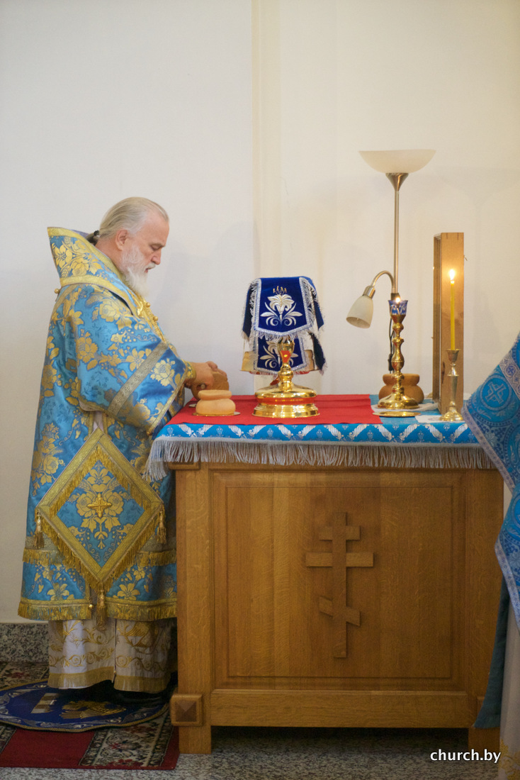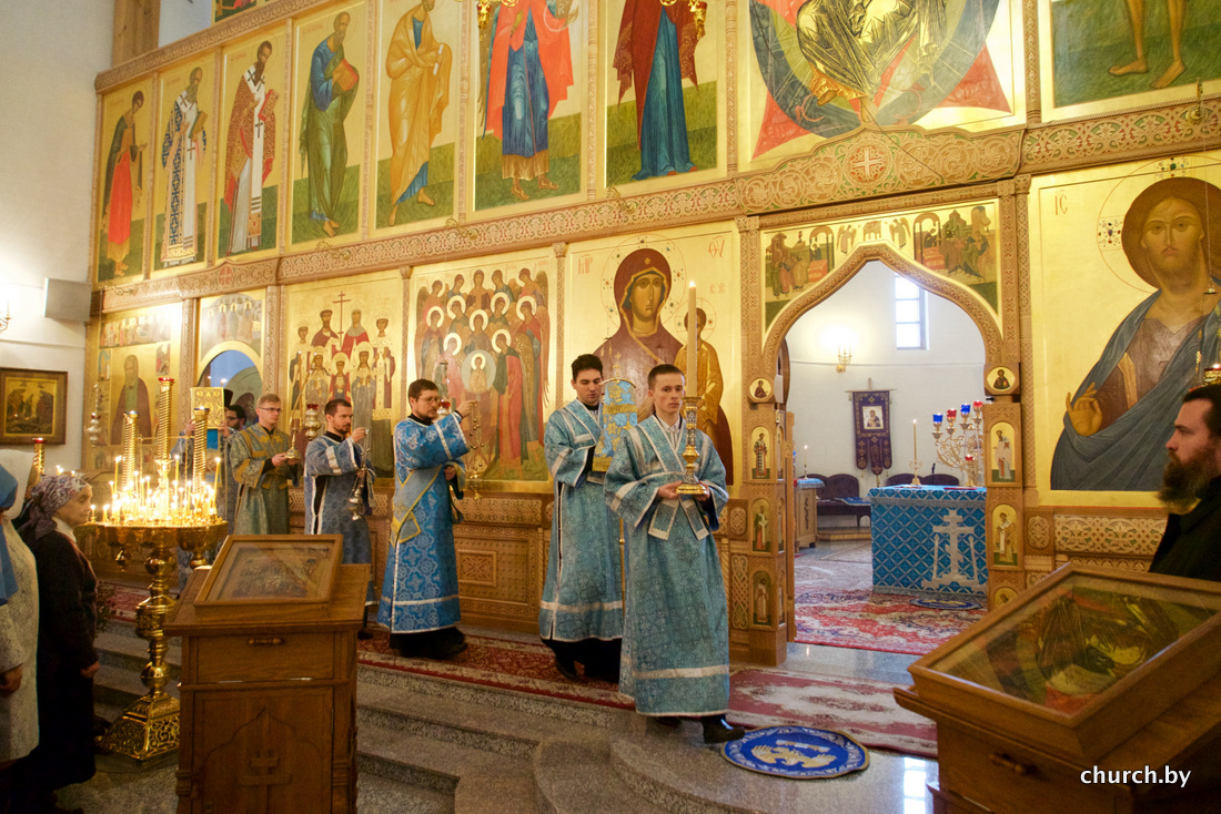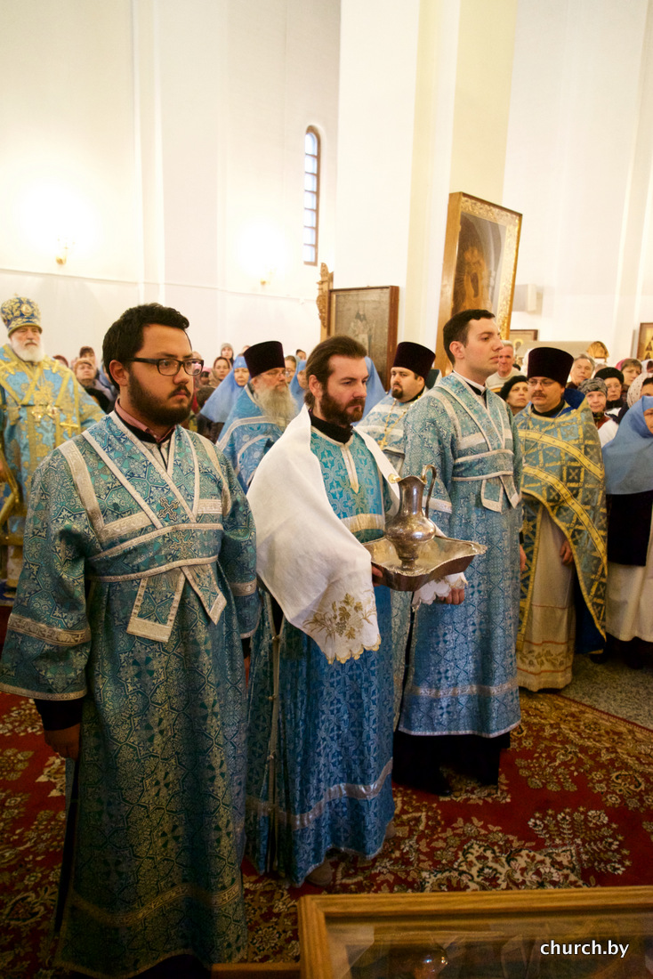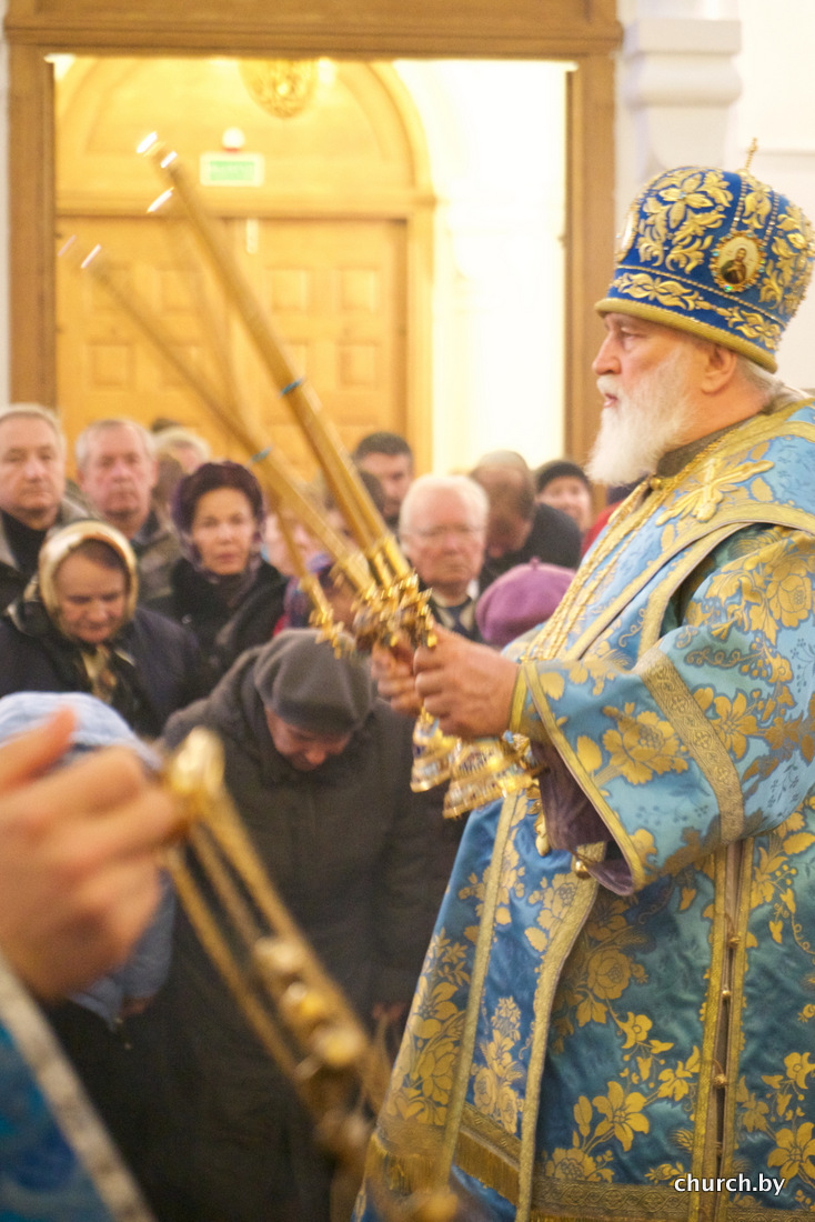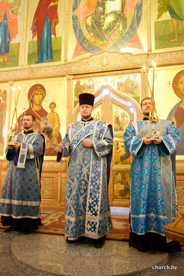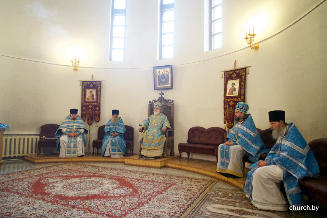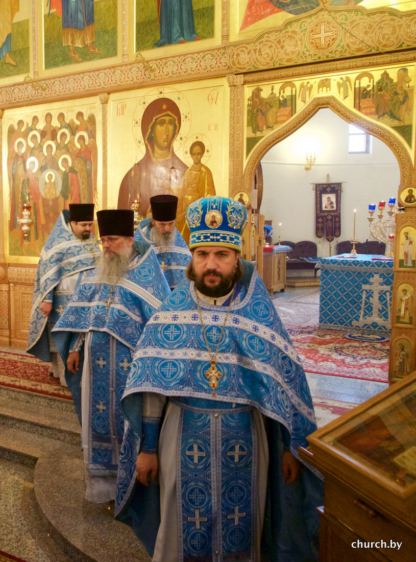 Его Высокопреосвященству сослужили: архимандрит Вассиан (Змеев), представитель Патриарха Московского и всея Руси в Белорусском Экзархате, секретарь Минской епархии протоиерей Андрей Волков и клирики Покровского храма.