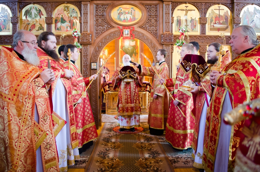 Архипастырям сослужили: управляющий делами Минской Экзархии архимандрит Сергий (Брич); секретарь Минской епархии протоиерей Андрей Волков и клирики Гомельской епархии.