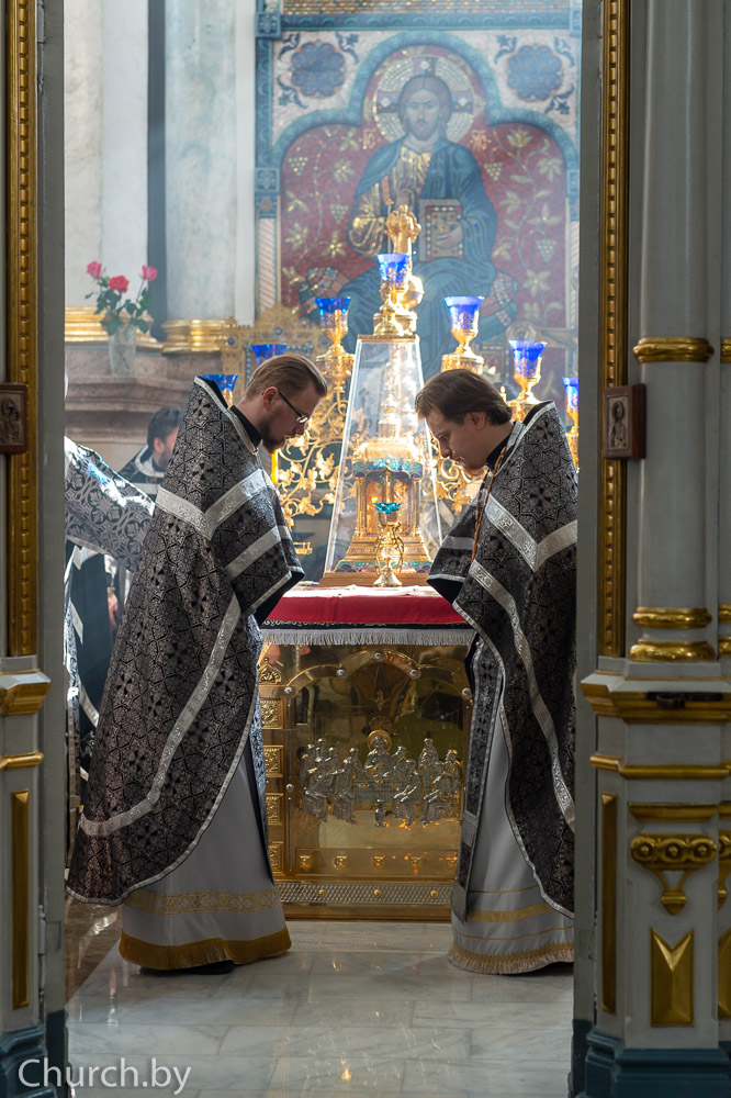 Его Высокопреосвященству сослужили секретарь Минской епархии протоиерей Андрей Волков и клирики кафедрального собора.