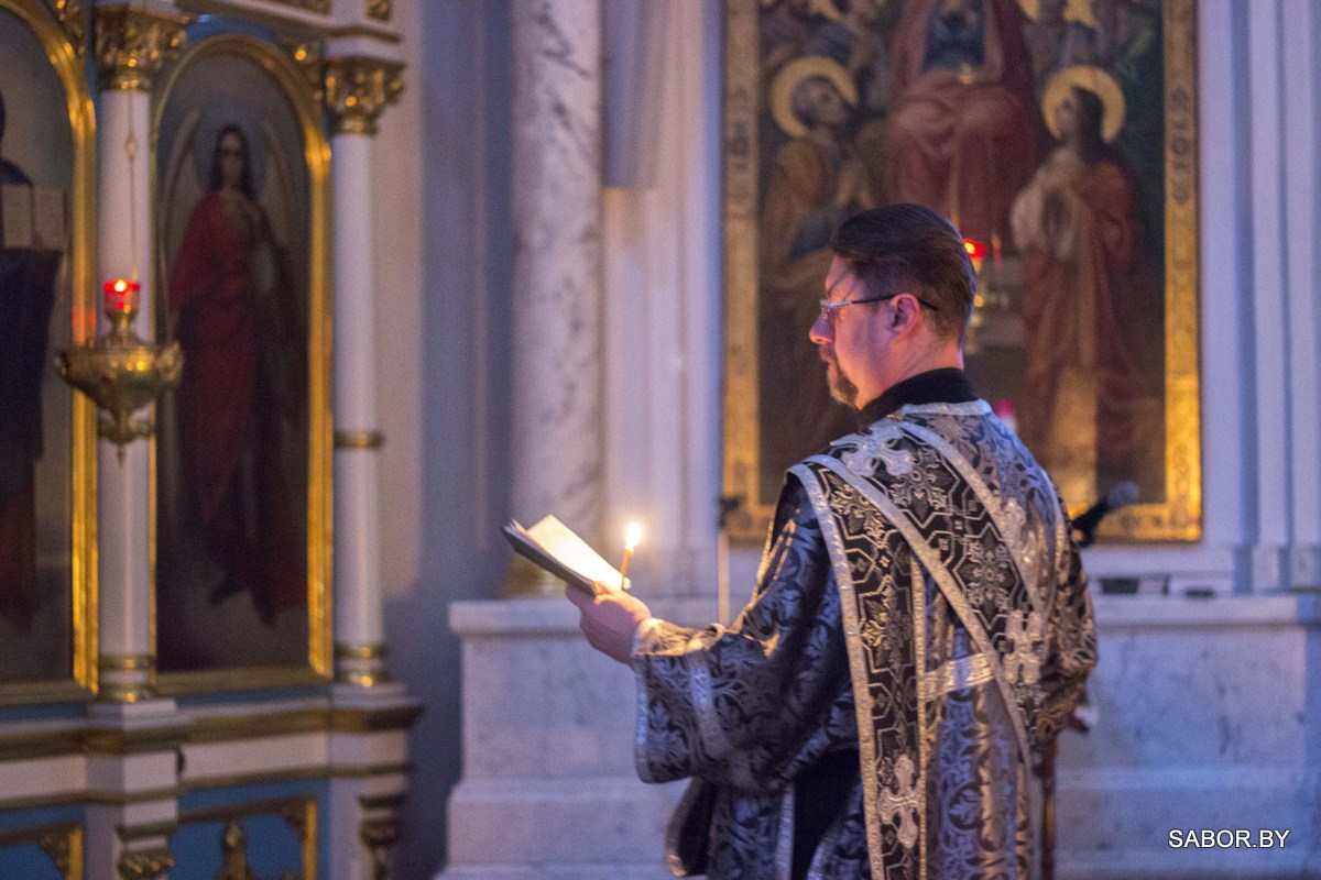 В среду первой седмицы Великого поста Патриарший Экзарх совершил Литургию Преждеосвященных Даров в Свято-Духовом кафедральном соборе города Минска