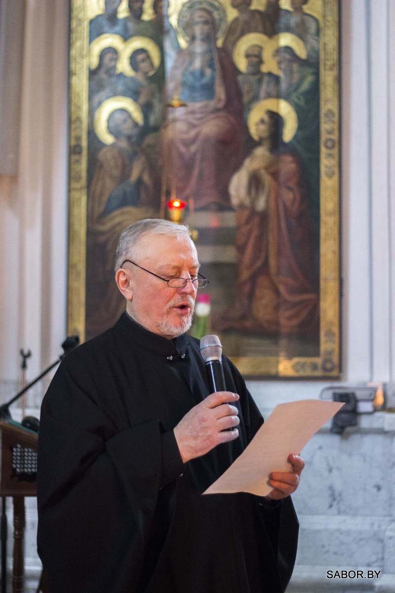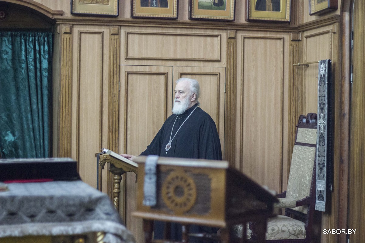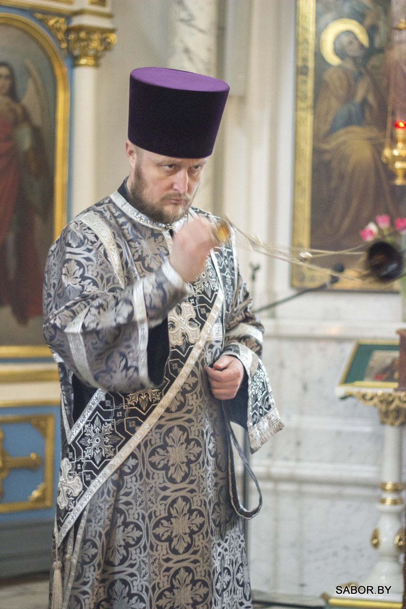 Его Высокопреосвященству сослужили: управляющий делами Минской Экзархии архимандрит Сергий (Брич); секретарь Минской епархии протоиерей Андрей Волков и клирики кафедрального собора.