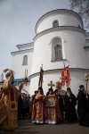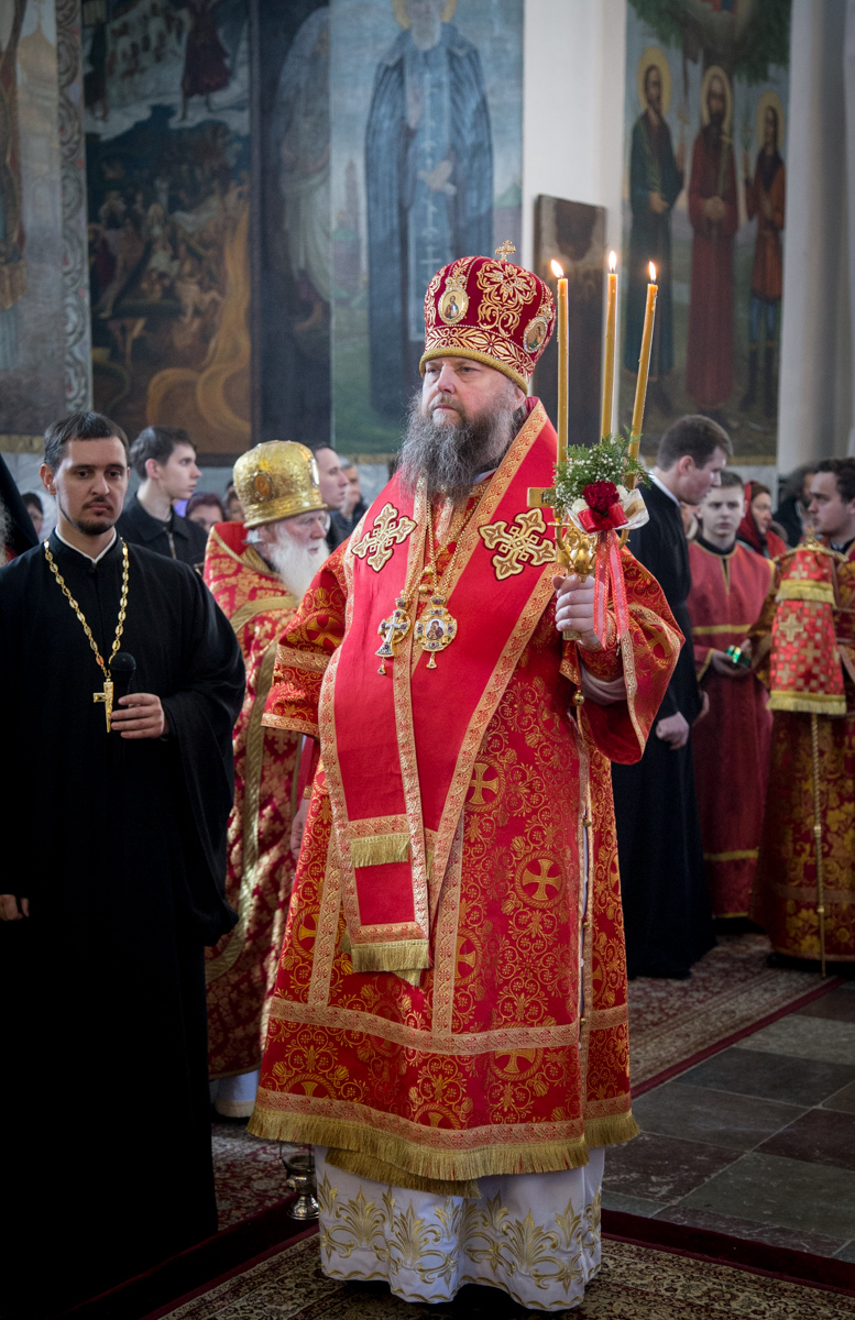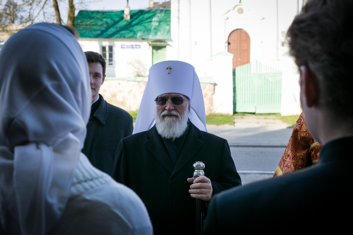 По окончании крестного хода к Патриаршему Экзарху со словами поздравления от лица братии обители, учащих и учащихся Минской духовной семинарии обратился ректор семинарии архиепископ Гурий.