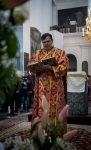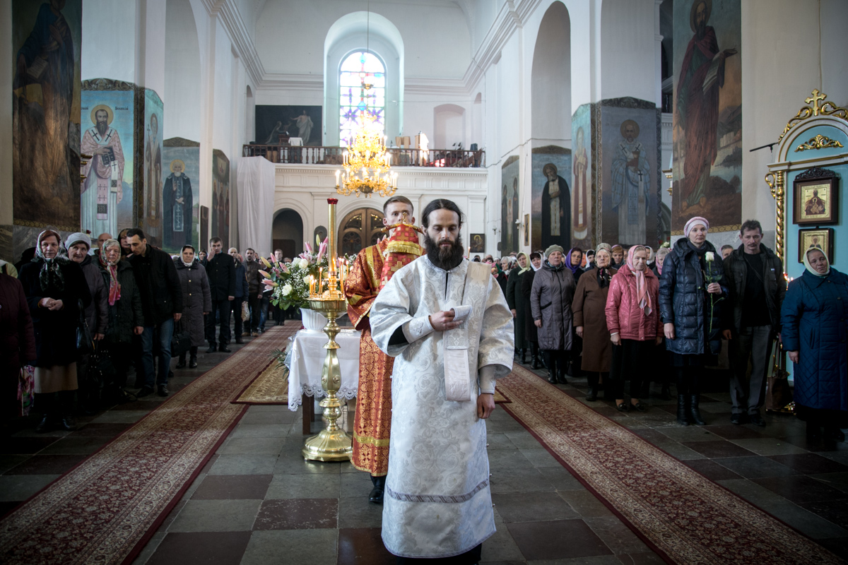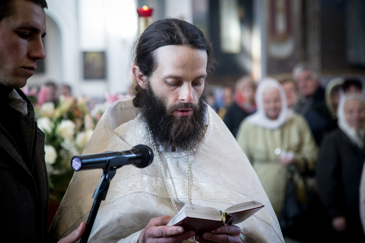 Богослужебные песнопения исполнил мужской хор Минской духовной семинарии под управлением диакона Евгения Василевского.