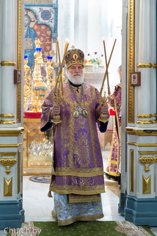 Его Высокопреосвященству сослужили: первый проректор Института теологии БГУ протоиерей Сергий Гордун, секретарь Минской епархии протоиерей Андрей Волков и клирики кафедрального собора.