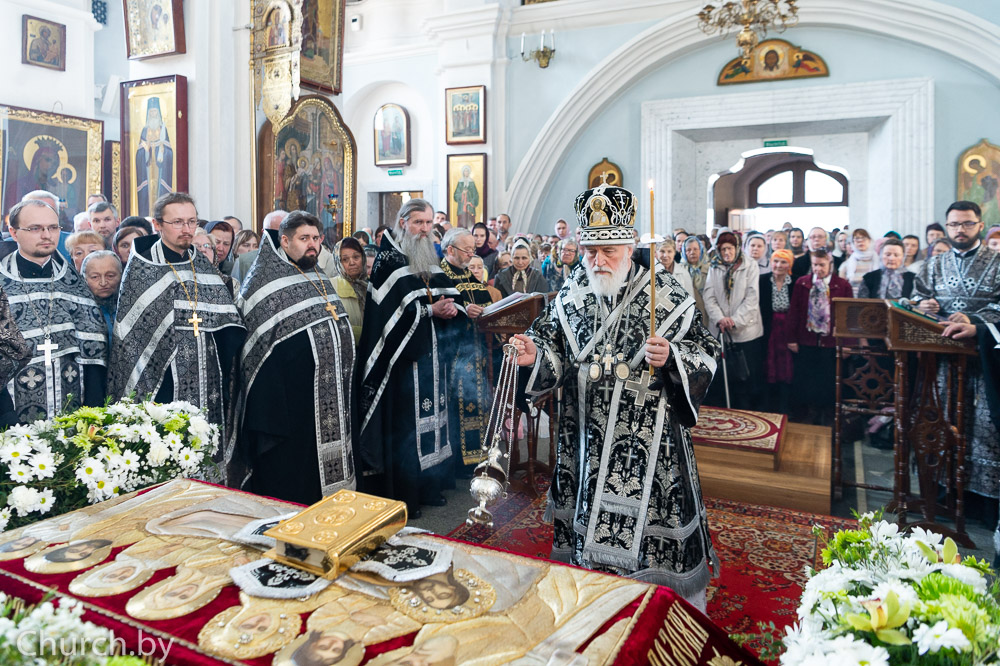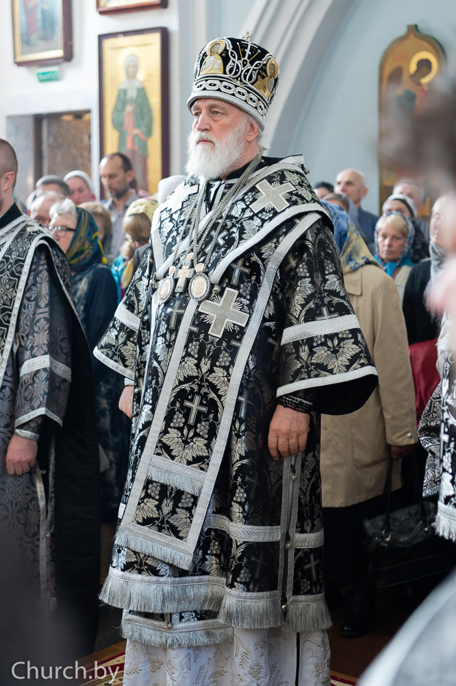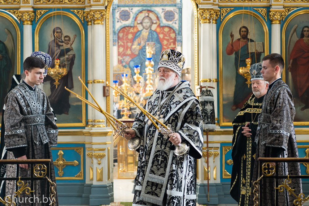 Его Высокопреосвященству сослужили: первый проректор Института теологии БГУ протоиерей Сергий Гордун, секретарь Минской епархии протоиерей Андрей Волков и клирики кафедрального собора.