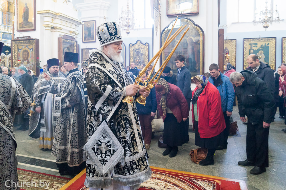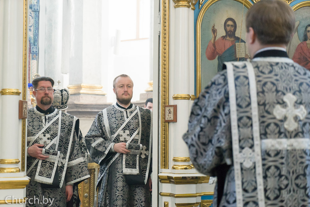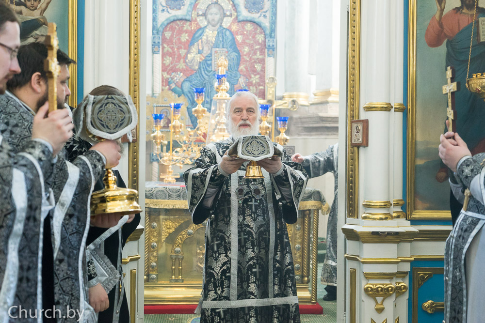 В Великую среду Патриарший Экзарх совершил Литургию Преждеосвященных Даров в Свято-Духовом кафедральном соборе города Минска