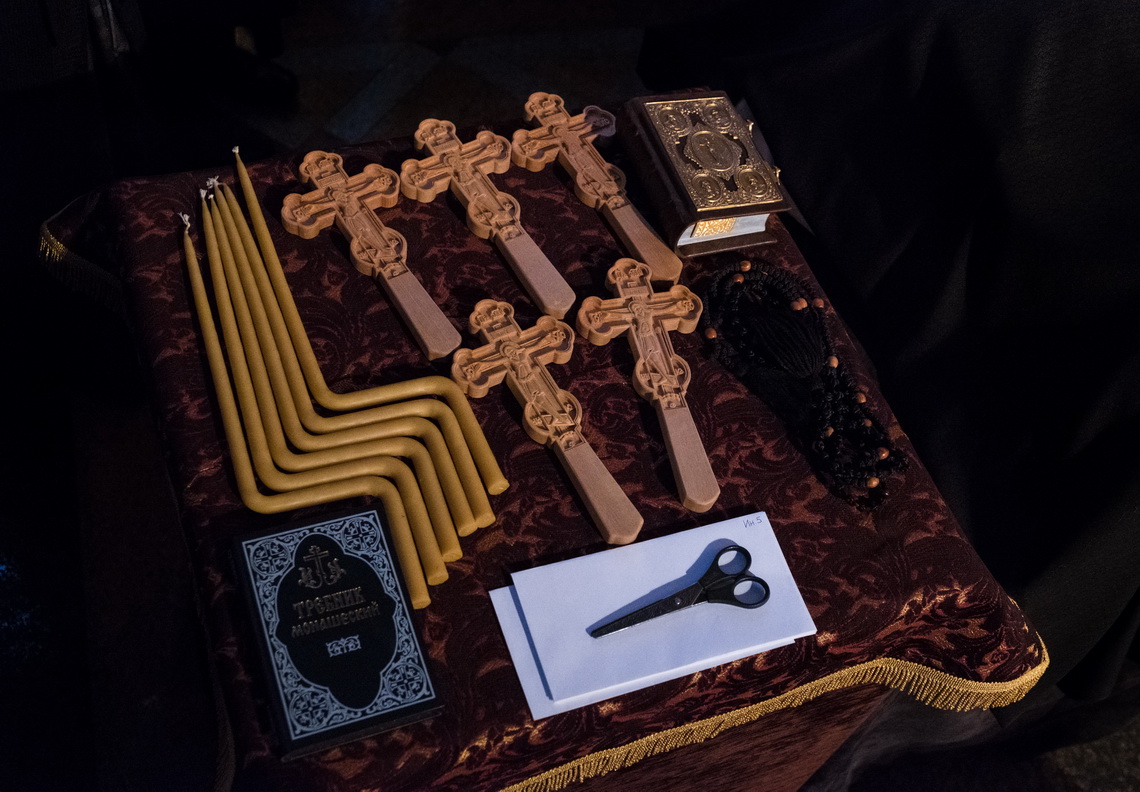 По окончании богослужения Патриарший Экзарх совершил пострижение в мантию пяти рясофорных инокинь и в рясофор — пяти послушниц, а также благословил трех новых послушниц Елисаветинского монастыря на послушание в обители.