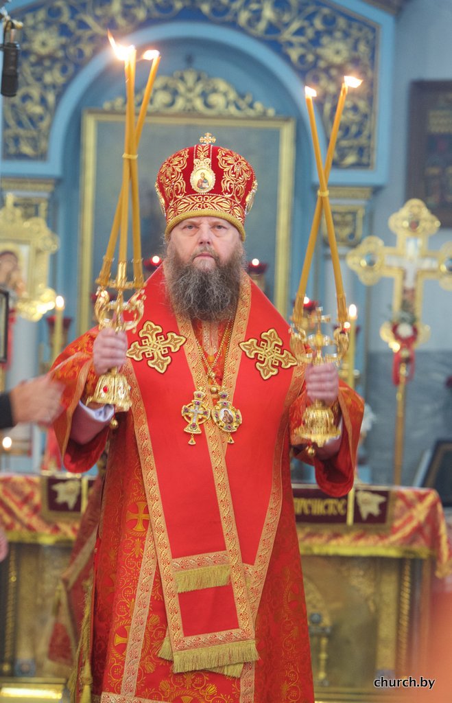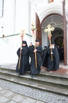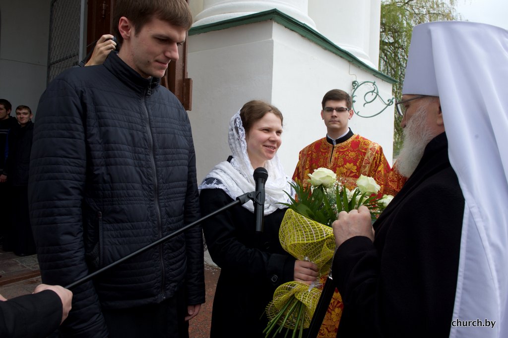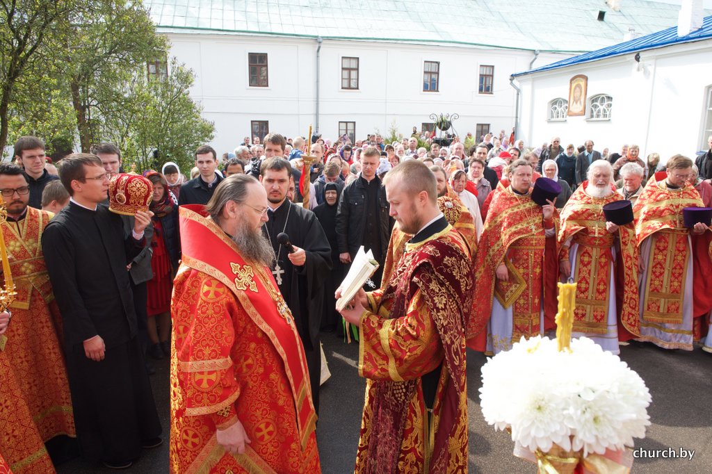 По окончании крестного хода к Патриаршему Экзарху со словами поздравления от лица братии обители, учащих и учащихся Минской духовной семинарии обратился ректор семинарии архиепископ Гурий.