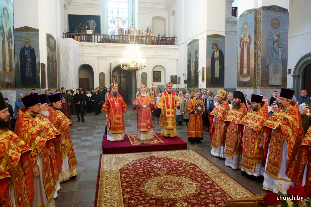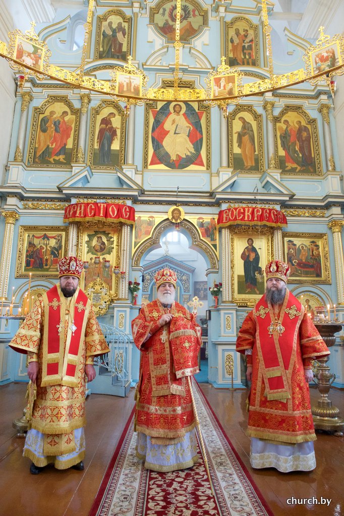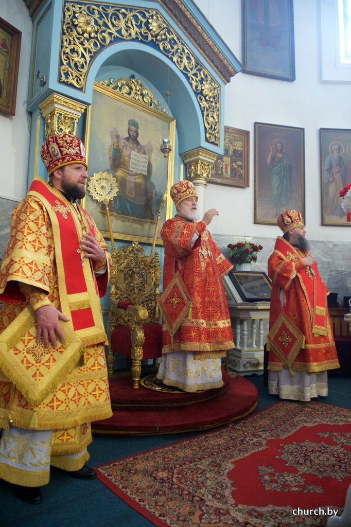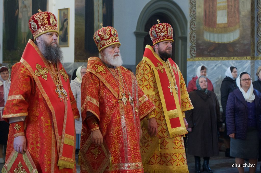 Архипастырям сослужили братия Жировичского монастыря в священном сане и преподаватели Минской духовной семинарии в священном сане.