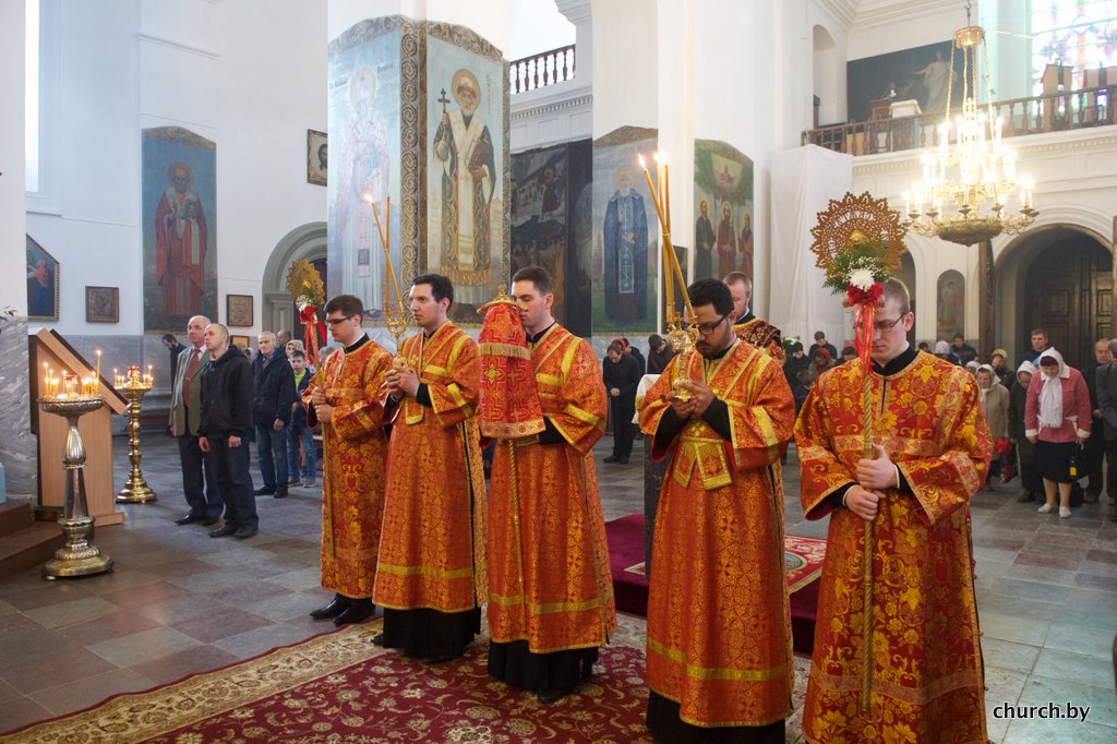 Богослужебные песнопения исполнил мужской хор Минских духовных школ под управлением Ильи Рудко.