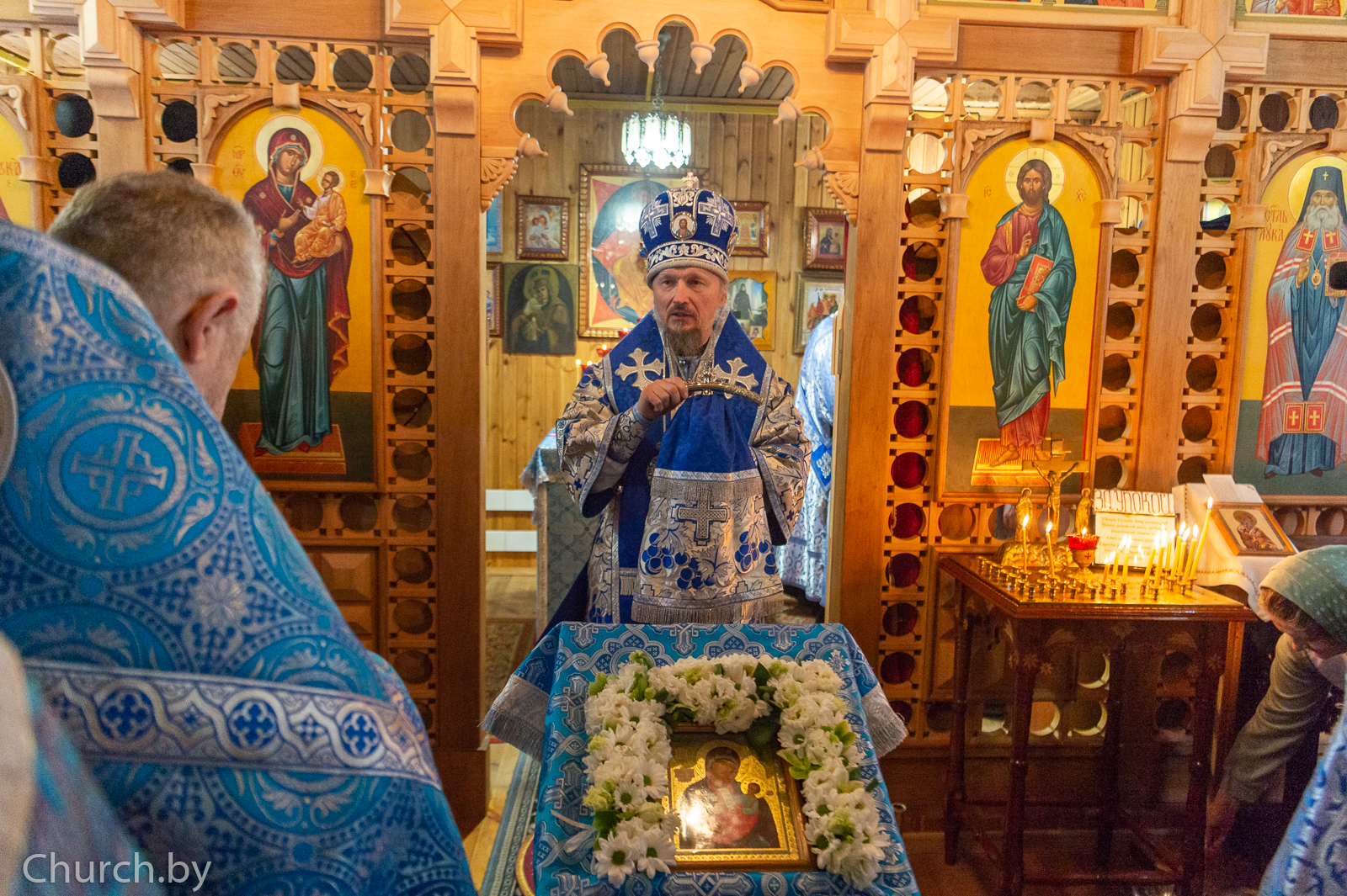 В сослужении епископа Молодечненского и Столбцовского Павла и епископа Несвижского Авксентия Его Высокопреосвященство совершил Божественную литургию в Никольском храме деревни Станьково и молебен на месте упокоения святой.
