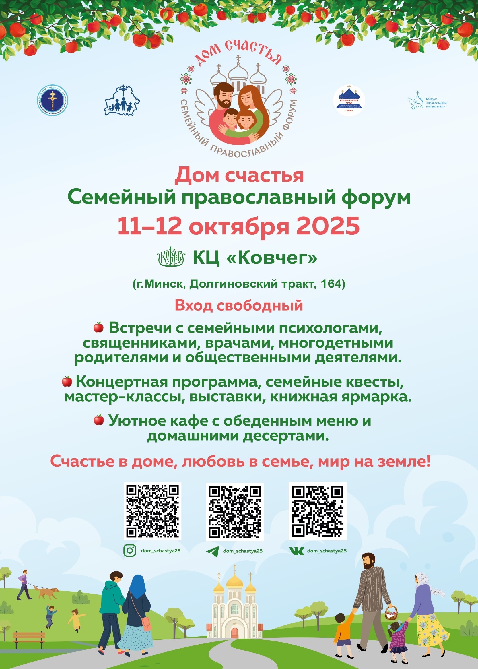 01 октября 202511-12 октября 2025 года по благословению Митрополита Минского и Заславского Вениамина, Патриаршего Экзарха всея Беларуси, в культурном духовно-просветительском центре «Ковчег» пройдет Семейный православный форум «Дом счастья».