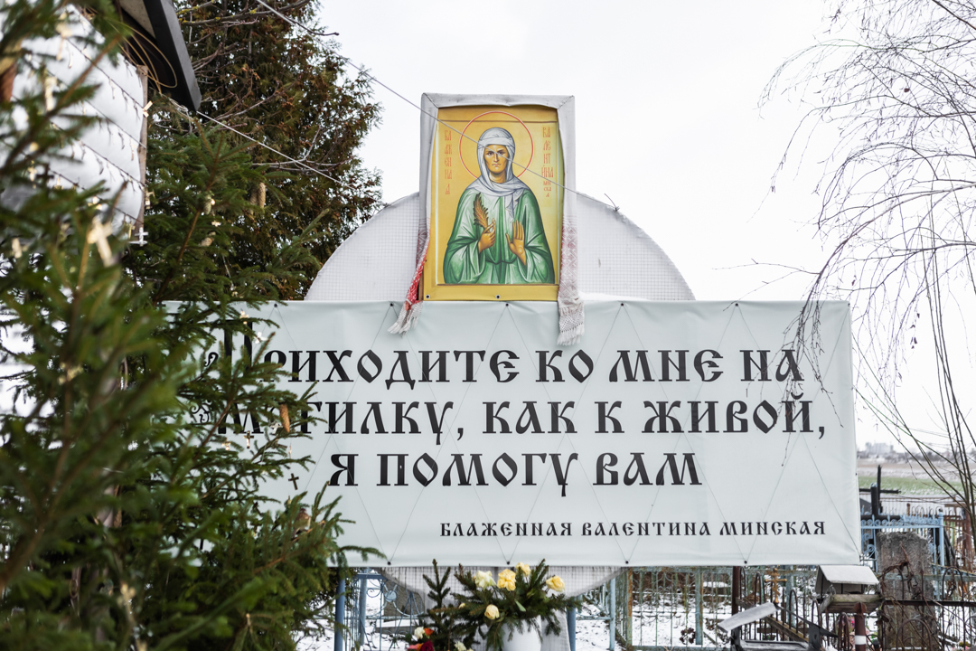 По окончании Литургии начнется крестный ход от Свято-Никольского храма деревни Станьково к месту погребения святой блаженной Валентины Минской на кладбище возле деревни Крысово Дзержинского района, где будет совершен молебен.