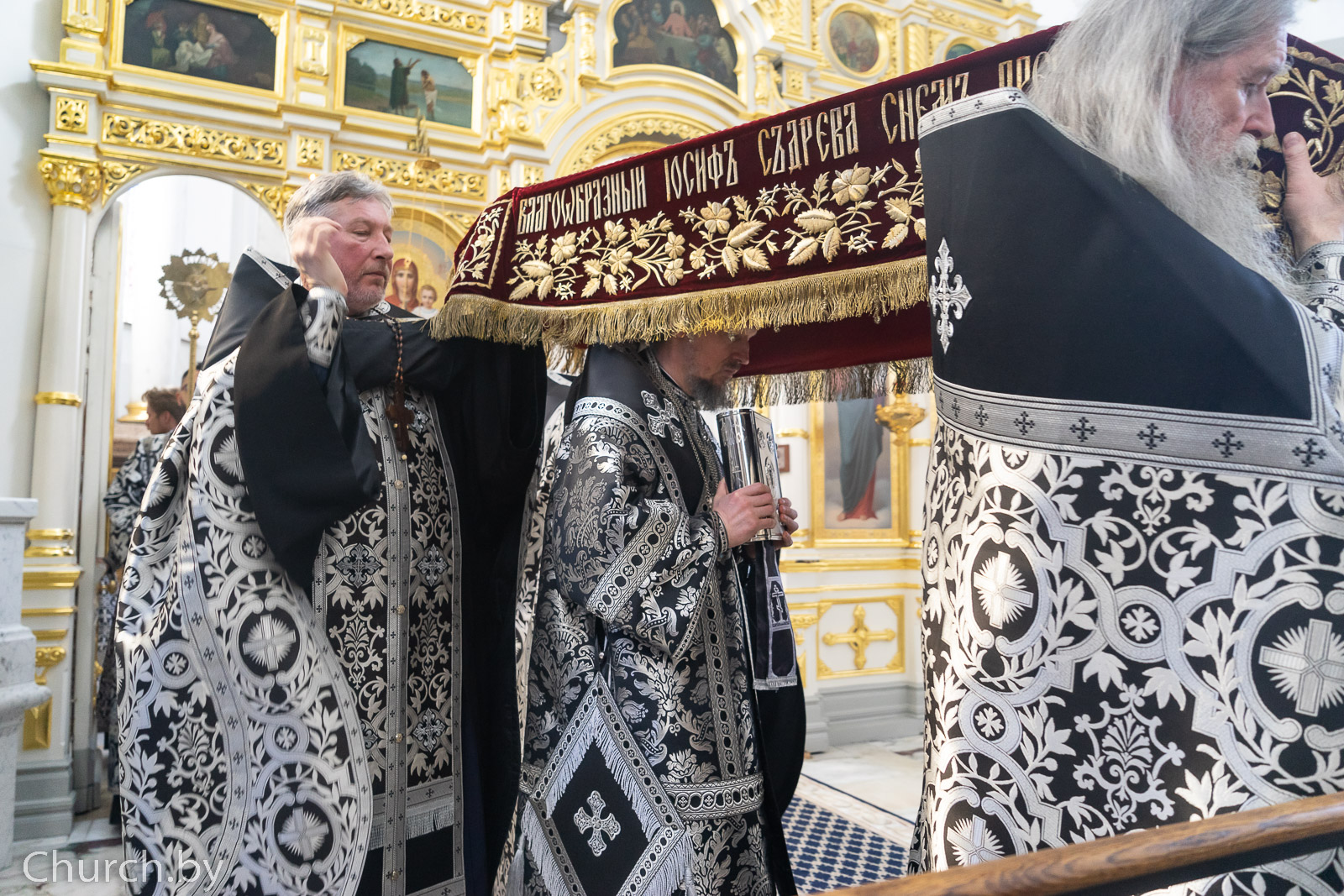 Вечером 10 апреля 2026 года, в канун Великой Субботы, Митрополит Минский и Заславский Вениамин, Патриарший Экзарх всея Беларуси, совершил в Свято-Духовом кафедральном соборе города Минска утреню с чином погребения Господа нашего Иисуса Христа.