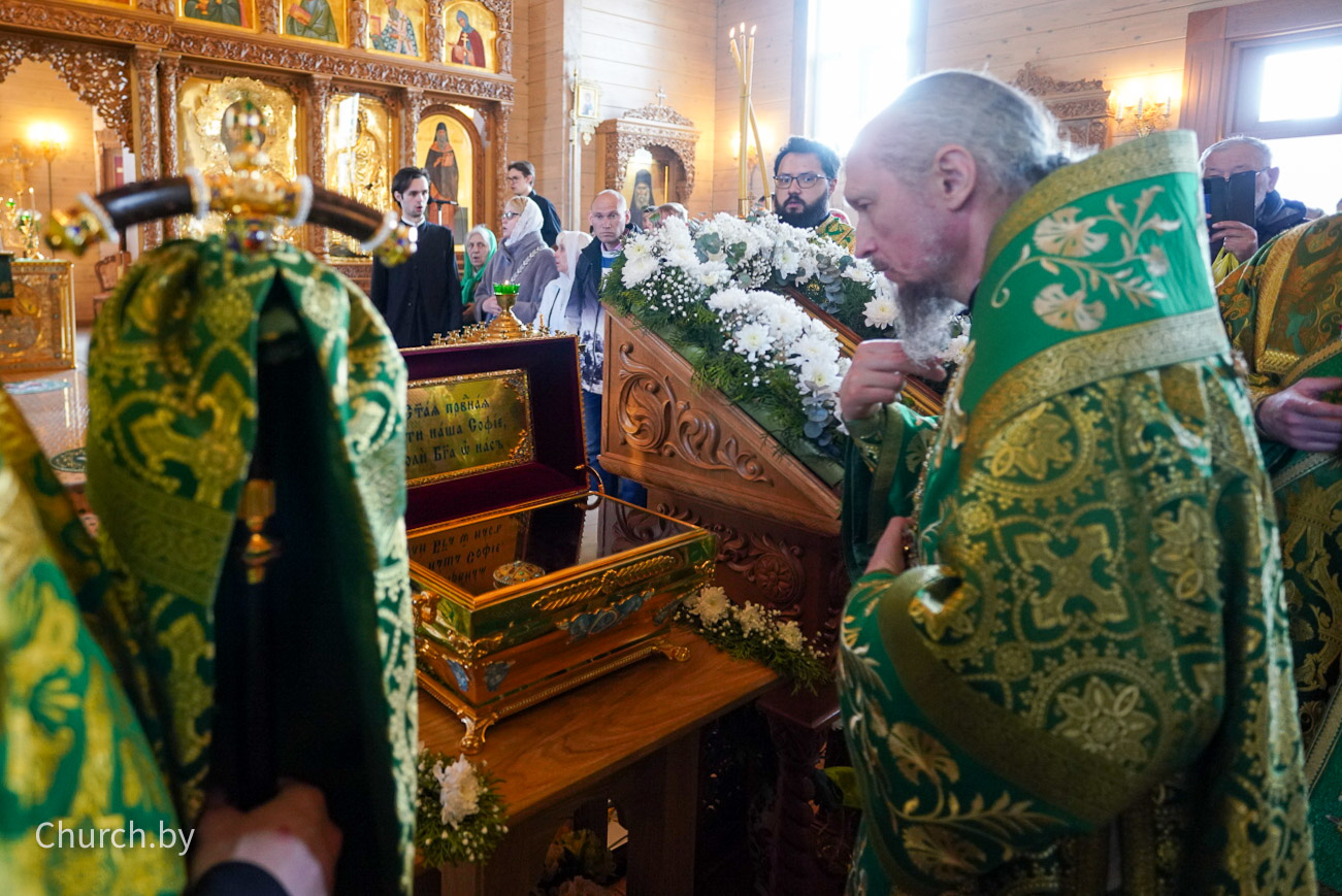 29 марта 2026 года Митрополит Минский и Заславский Вениамин, Патриарший Экзарх всея Беларуси, управляющий Слуцкой епархией, возглавил торжественное богослужение в храме преподобного Паисия Святогорца в городе Слуцке по случаю дня памяти святой праведной Софии, княгини Слуцкой.