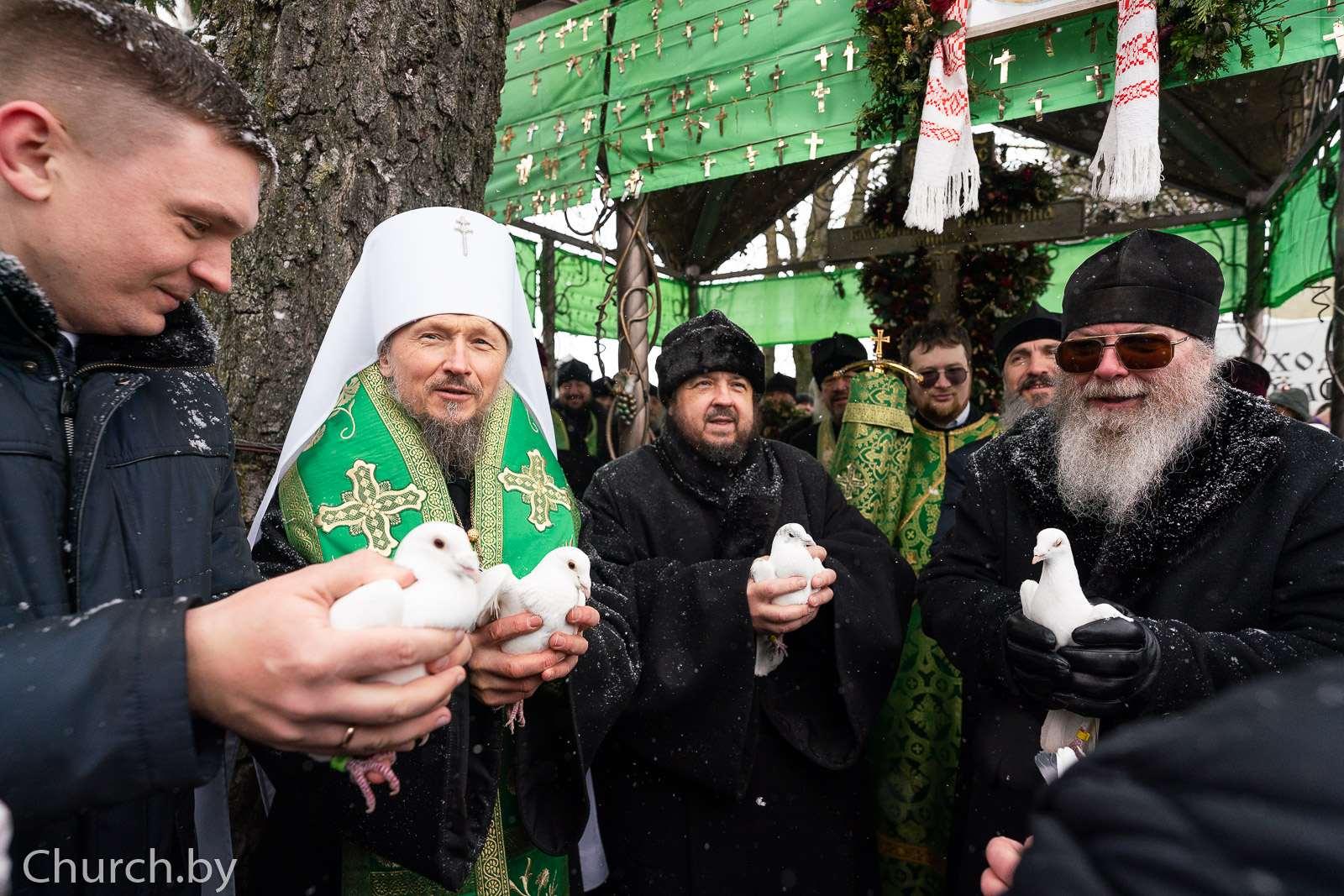 В сослужении епископа Молодечненского и Столбцовского Павла и епископа Несвижского Авксентия Его Высокопреосвященство совершил Божественную литургию в Никольском храме деревни Станьково и молебен на месте упокоения святой.