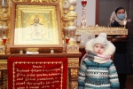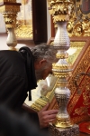 По заамвонной молитве Патриарший Экзарх и сослужащие ему священнослужители совершили молебное пение с крестным ходом и славление святому праведному страстотерпцу Евгению.