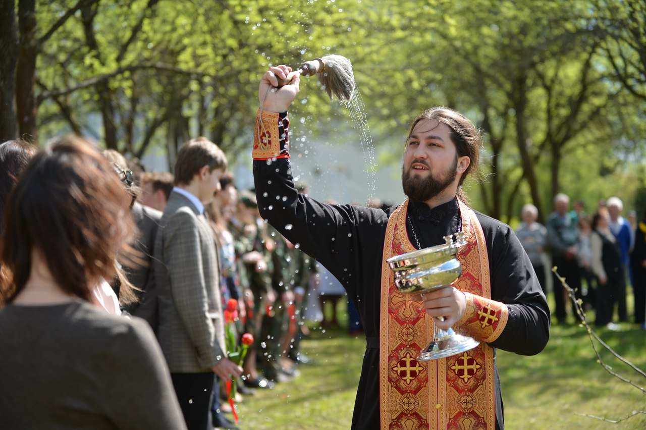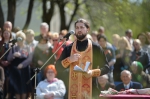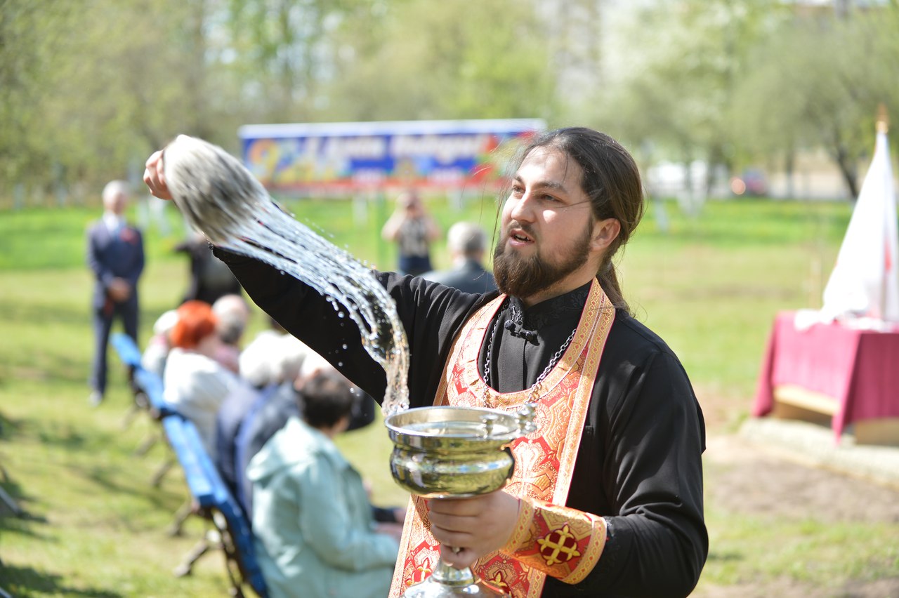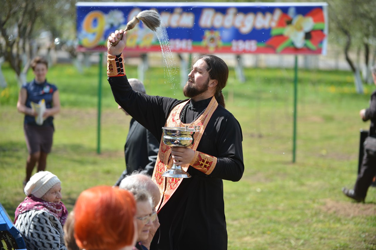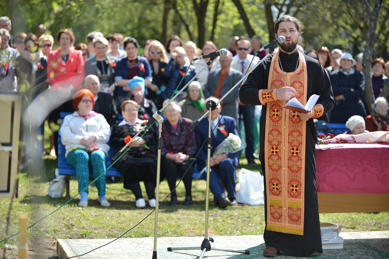 Настоятель храма святителя Луки Крымского в деревне Лесковка иерей Сергий Лешкевич обратился к ветеранам со словом приветствия и совершил освящение сада.