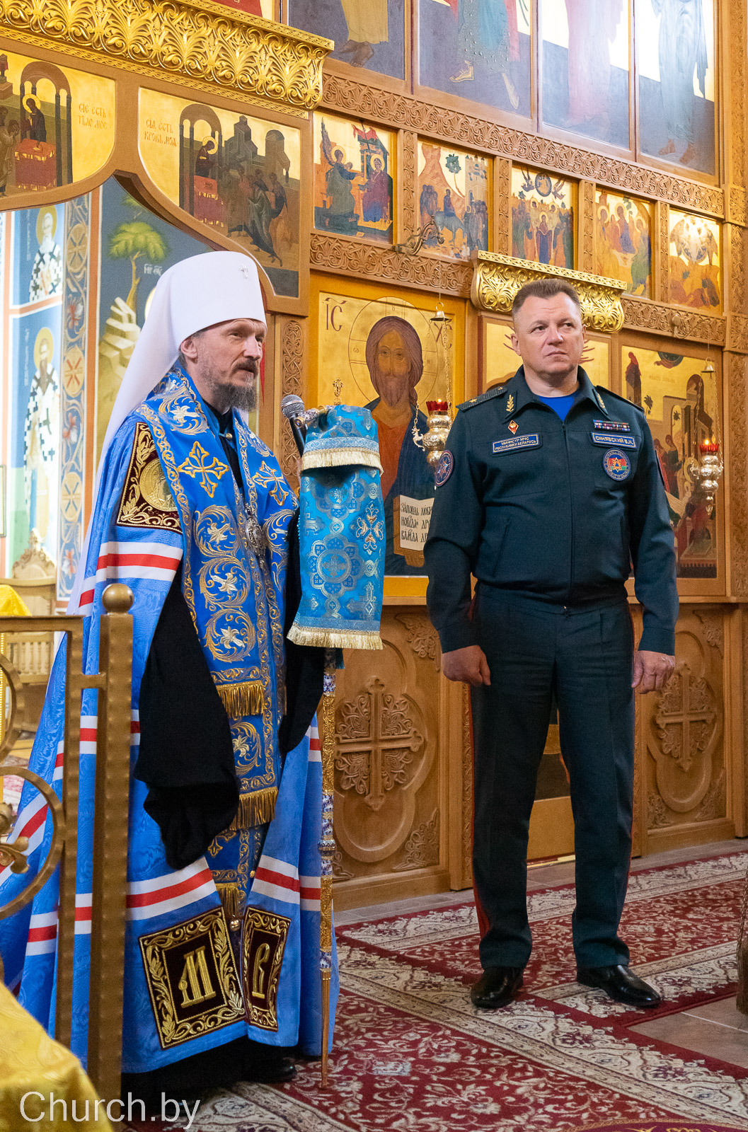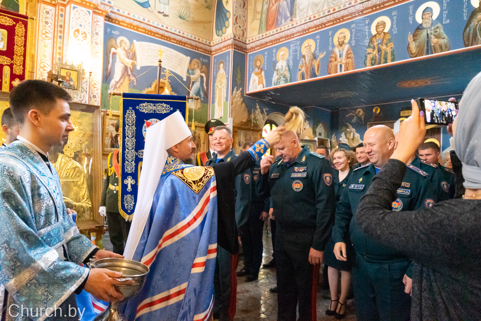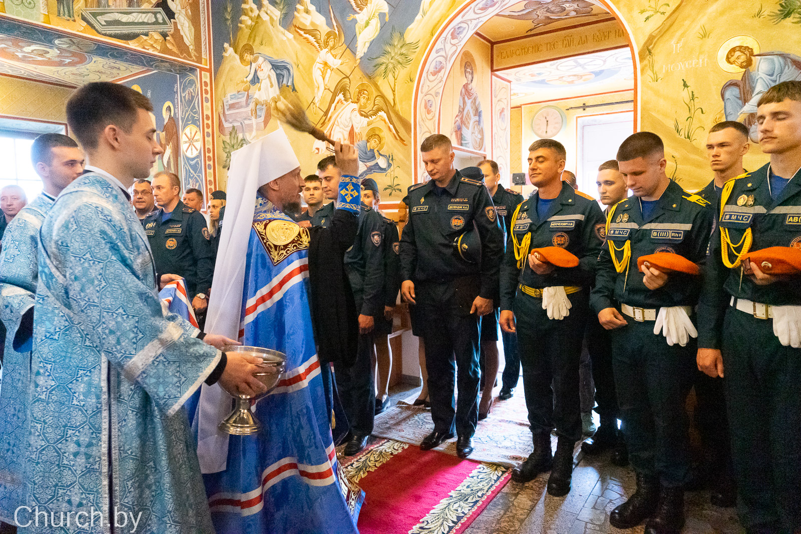 Его Высокопоеосвященству сослужили: настоятель храма, председатель Синодального отдела Белорусской Православной Церкви по взаимодействию с Вооруженными Силами и другими воинскими формированиями Республики Беларусь протоиерей Сергий Кузьменков и священнослужители, духовно окормляющие воинские формирования Беларуси.