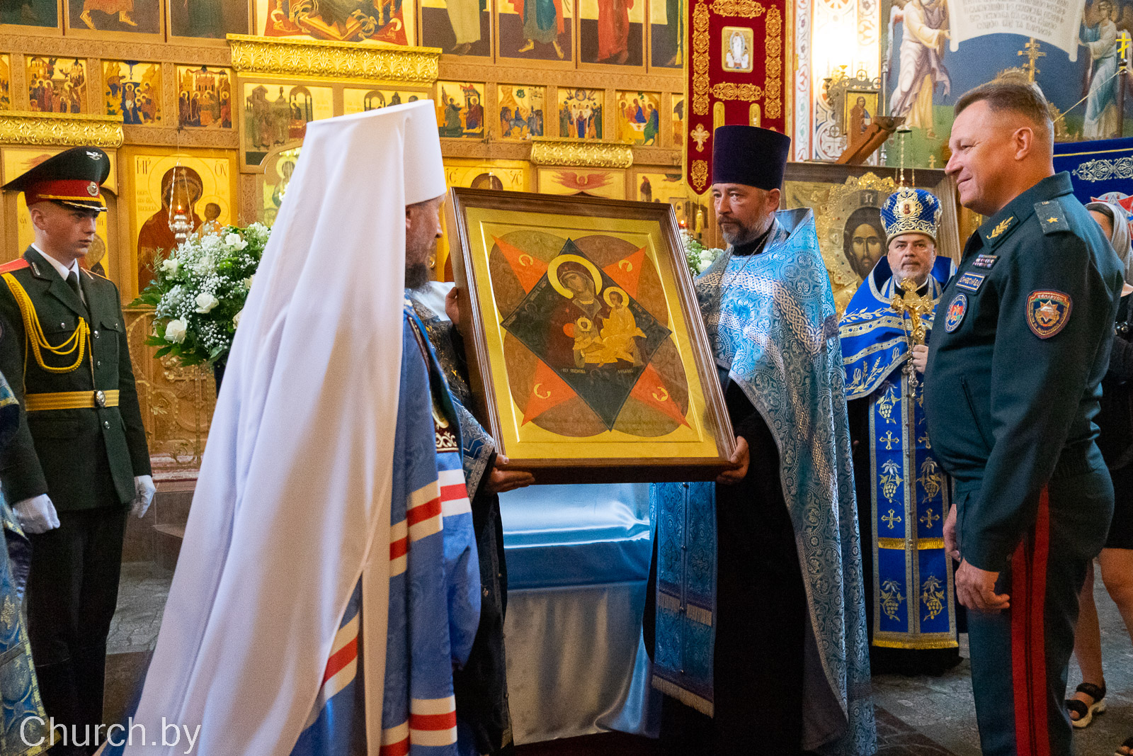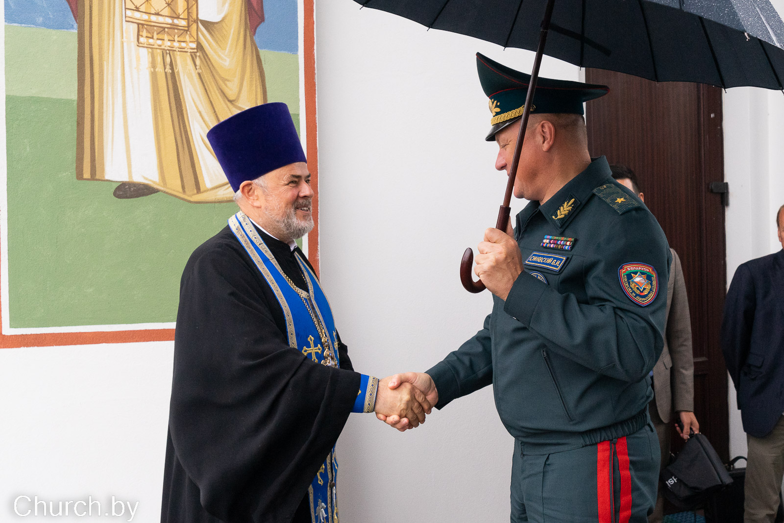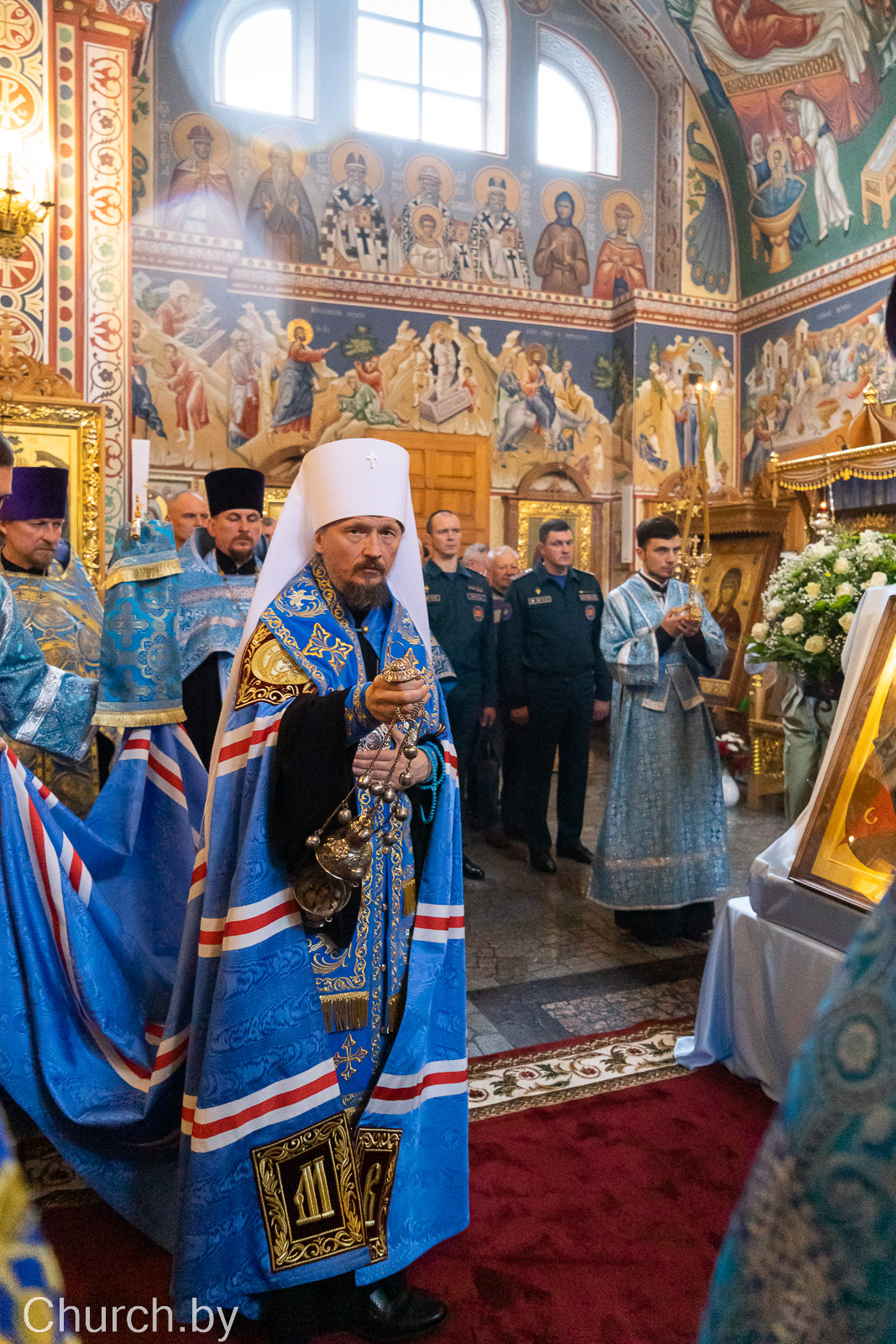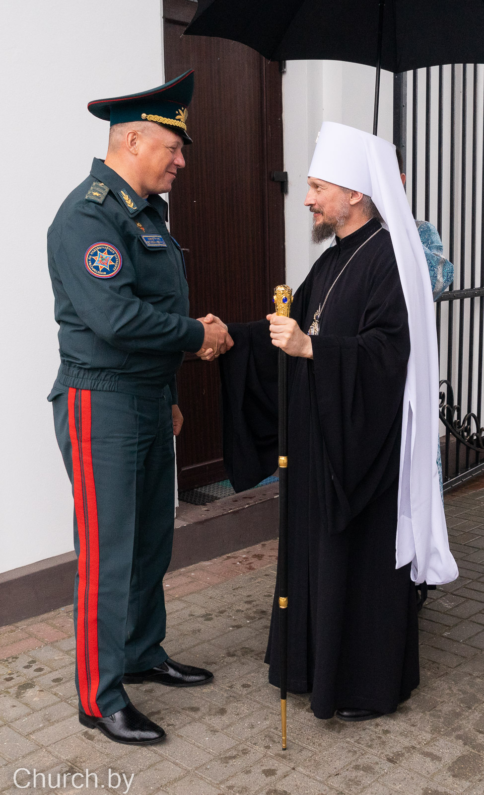 Его Высокопоеосвященству сослужили: настоятель храма, председатель Синодального отдела Белорусской Православной Церкви по взаимодействию с Вооруженными Силами и другими воинскими формированиями Республики Беларусь протоиерей Сергий Кузьменков и священнослужители, духовно окормляющие воинские формирования Беларуси.
