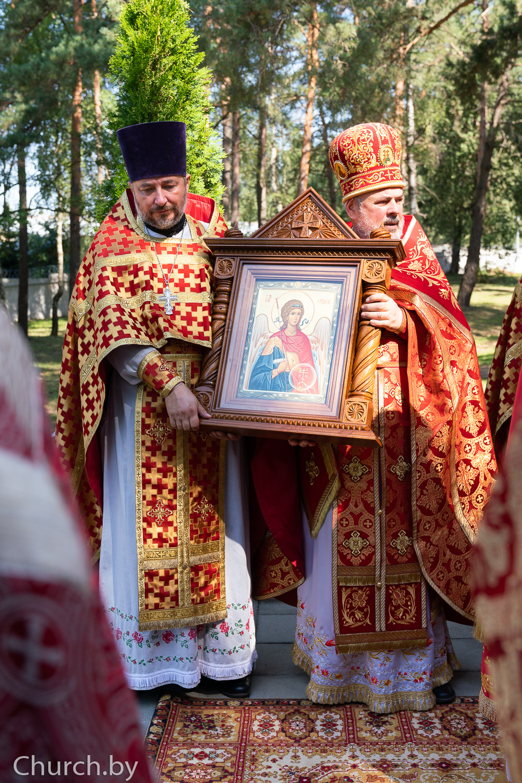 Богослужение было приурочено к 25-летию освящения храма, расположенного на территории части внутренних войск Республики Беларусь.