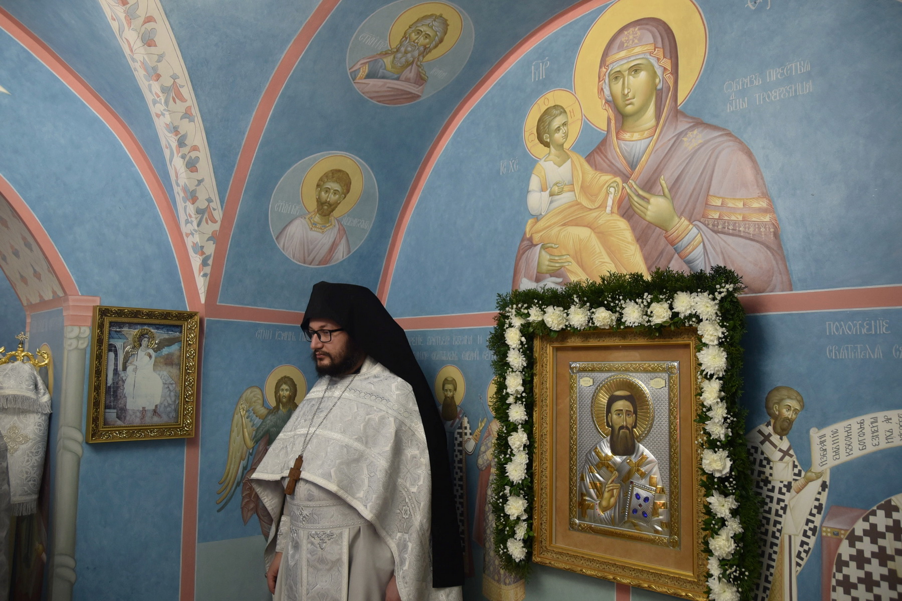 Перед началом богослужения митрополит Вениамин освятил храмовые росписи.