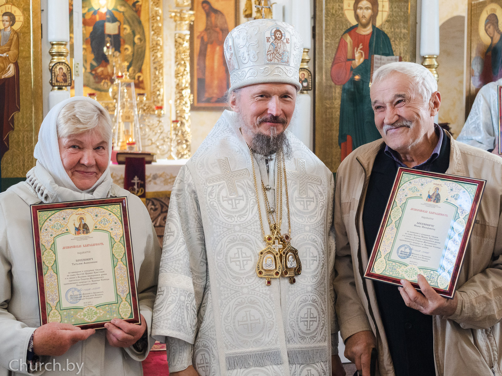 По завершении Литургии состоялось вручение орденов, грамот и благодарственных писем потрудившимся в деле создания и благоукрашения храма. Митрополитом Вениамином передана в дар приходу икона Белорусских святых, в числе которых святитель Георгий Могилевский, в честь которого был освящен храм.