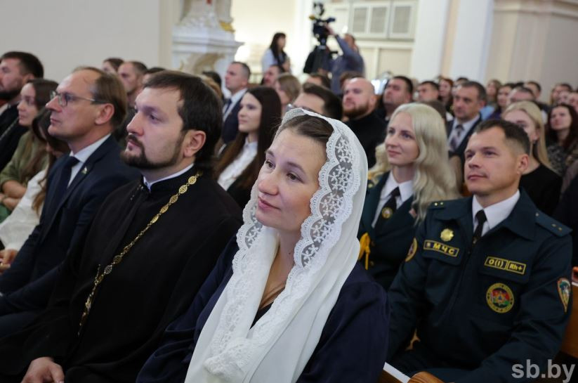 В зале присутствовали епископ Полоцкий и Глубокский Игнатий, Почетный настоятель прихода храма в честь иконы Божией Матери «Нечаянная радость» города Новополоцка архиепископ Феодосий.